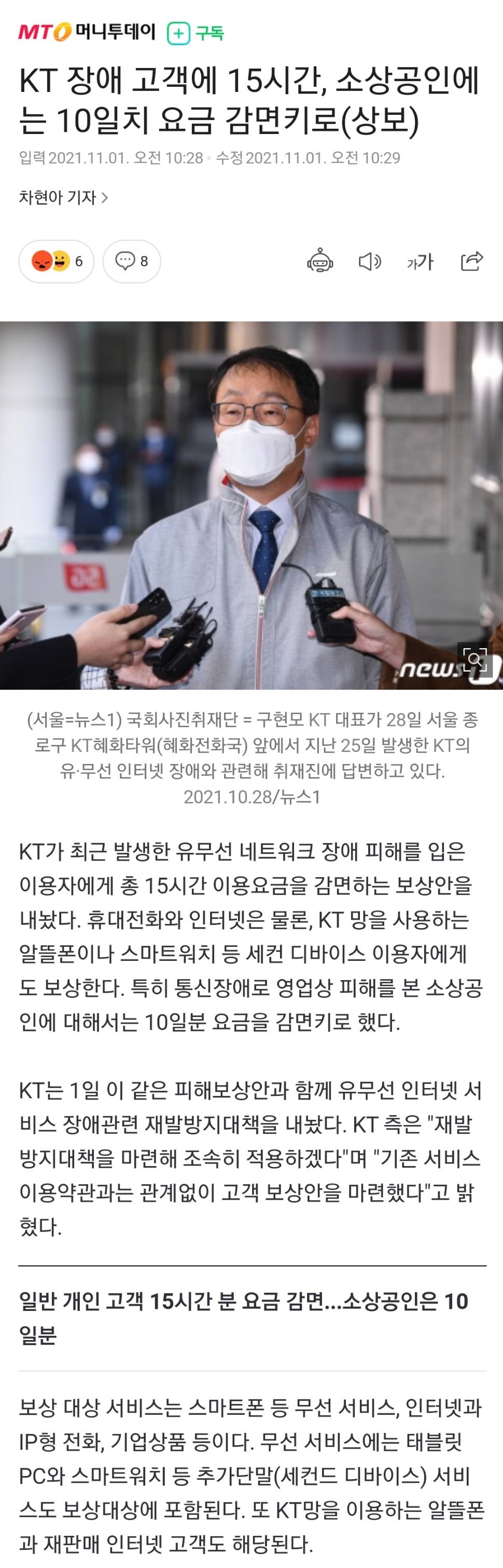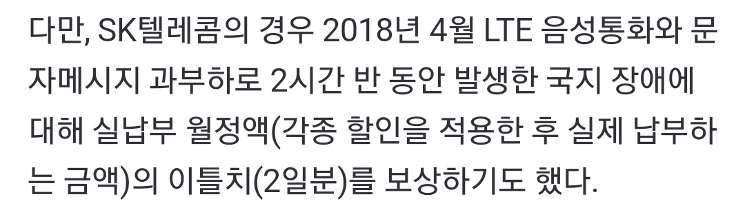 과거 SK 장애 보상