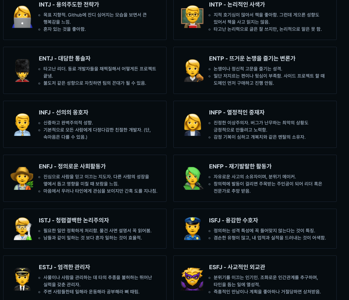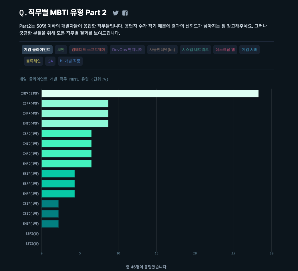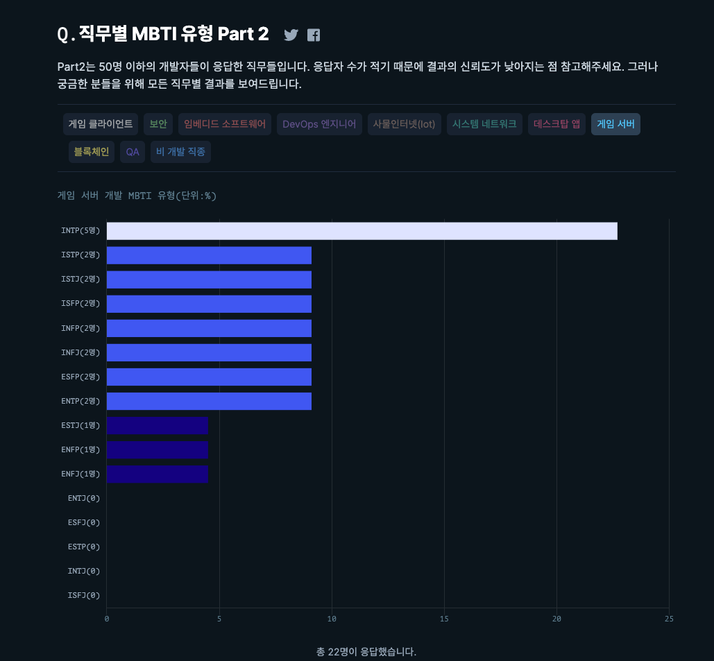서버 백엔드 쪽은 전반적으로 intp infj가 많다. 나는 내 적성에 맞는 일을 하고있는듯
