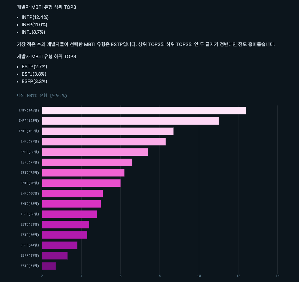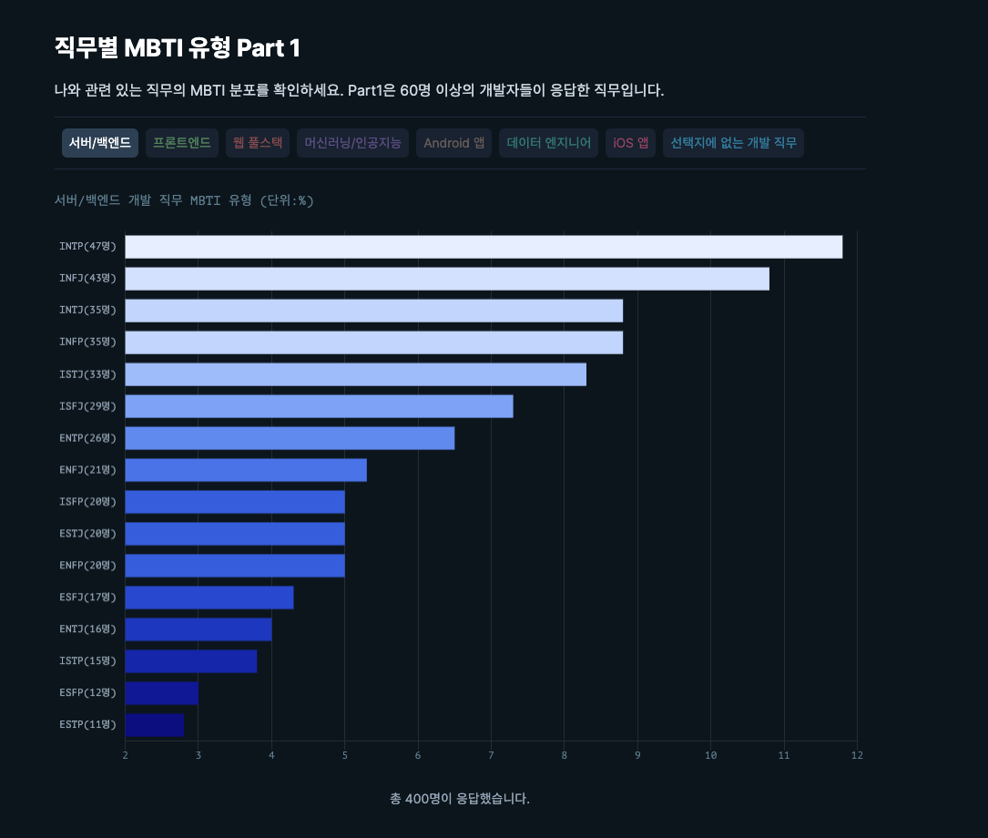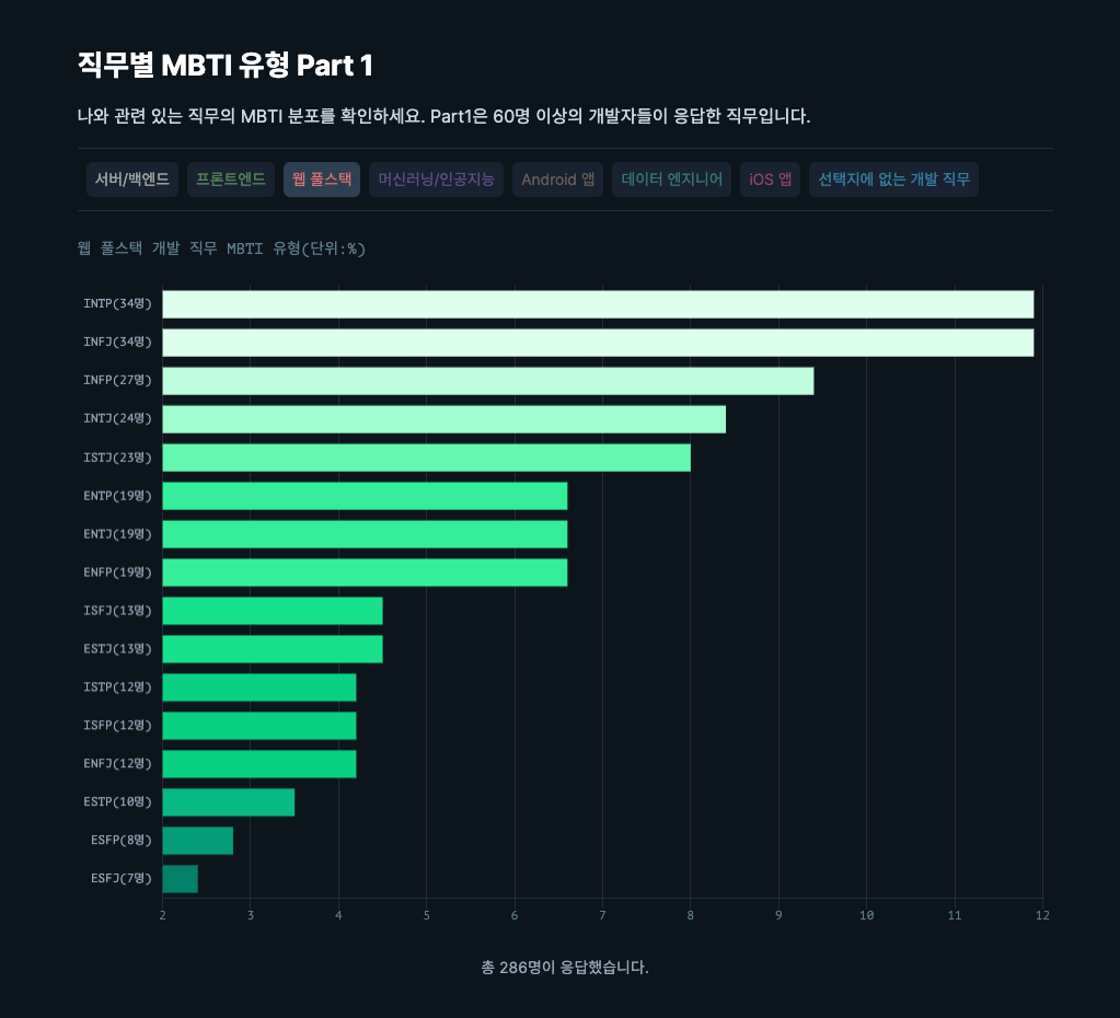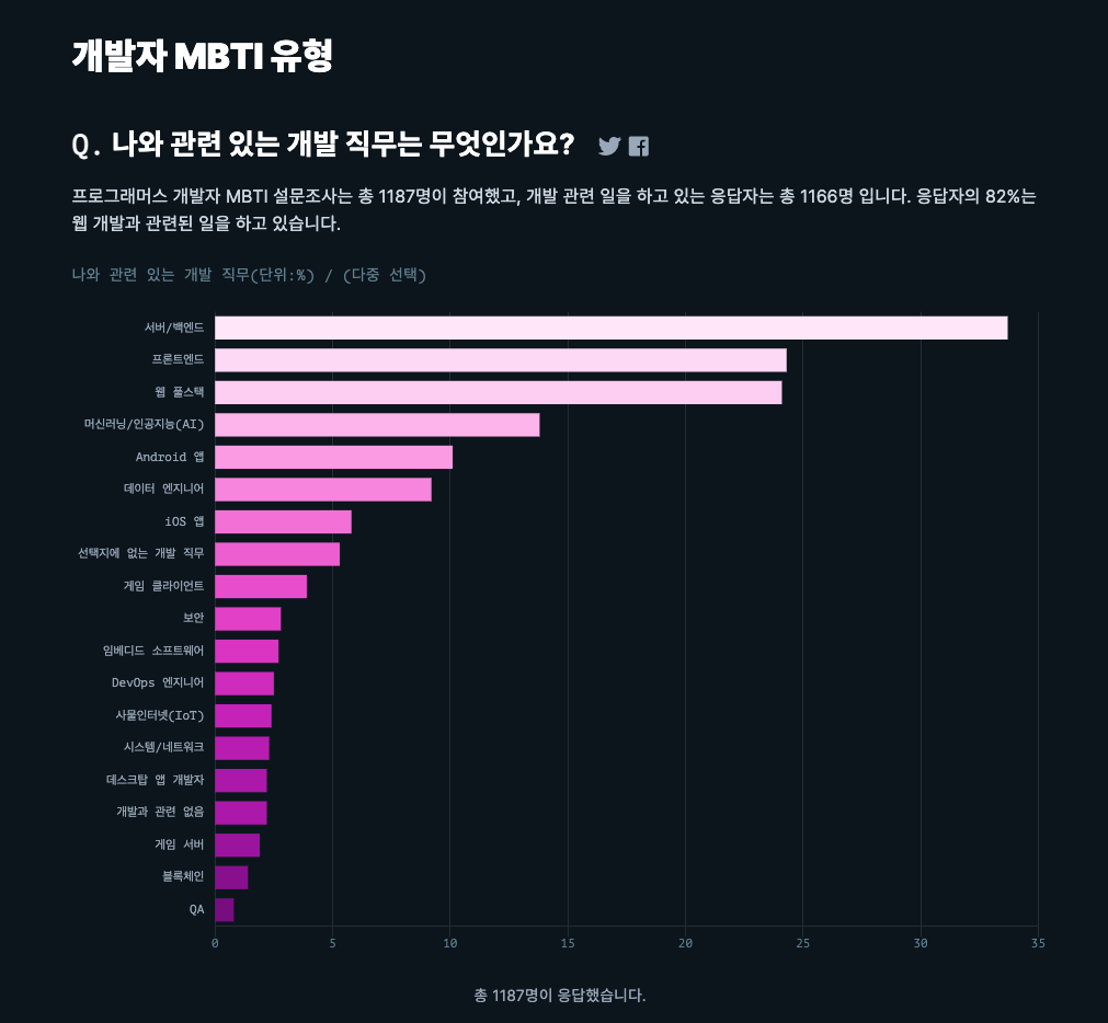 서버 백엔드 쪽은 전반적으로 intp infj가 많다. 나는 내 적성에 맞는 일을 하고있는듯