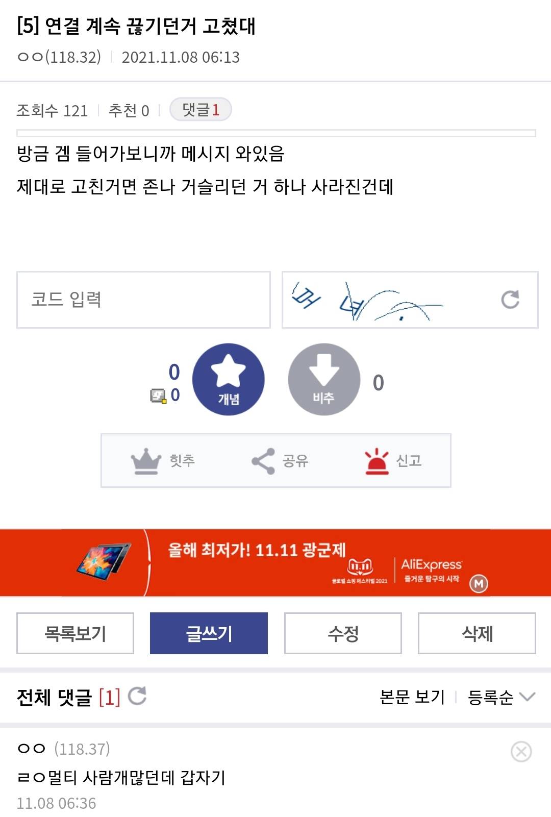 해줬다고 댓글 달았자나