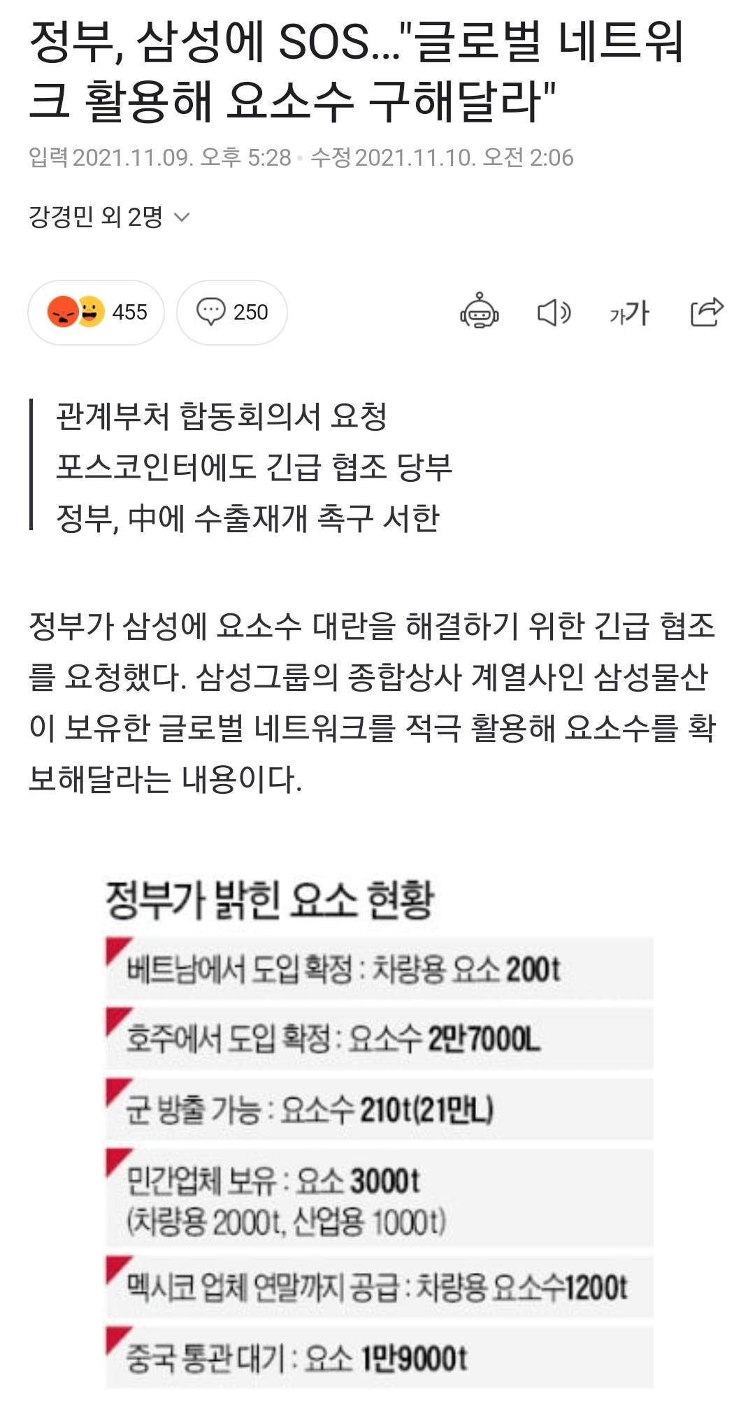 말 지원해줘 -> 감옥 보냄 요소수 구해줘 -> ????