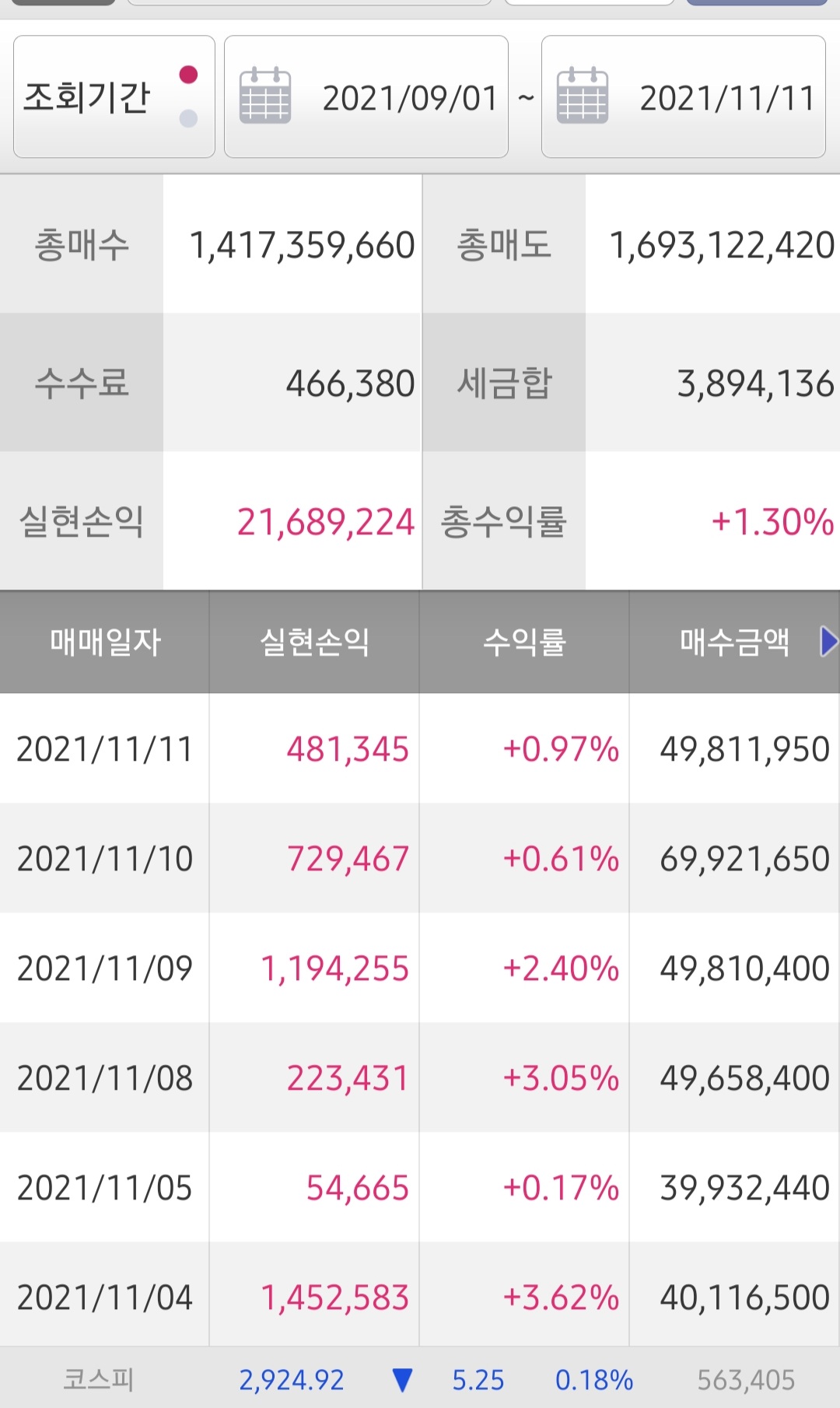 총매수랑 총매도가높은건 트레이드를많이했다는거야 시드가큰게아니라
