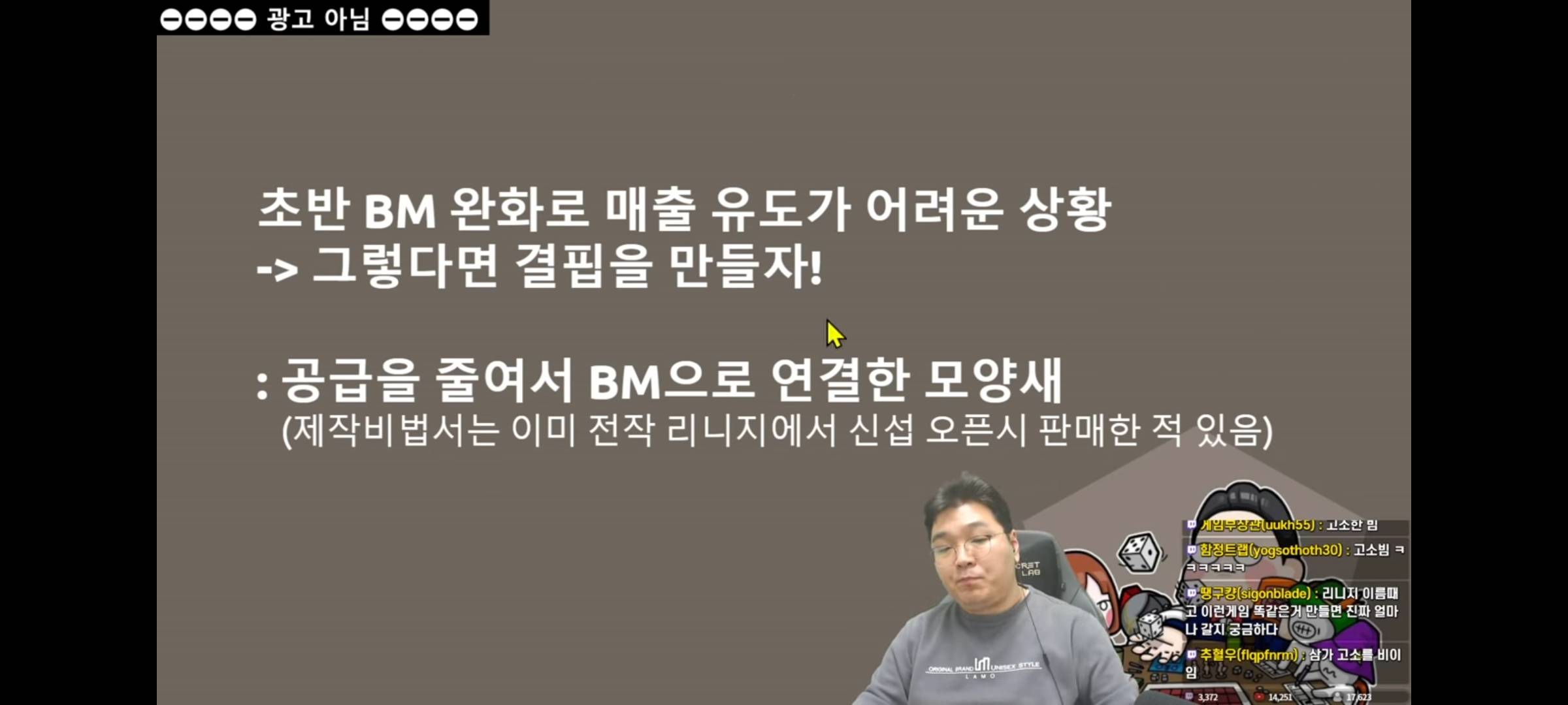 김실장은 컨텐츠 부족을 재화 결핍으로 시간끌려한게 아니냐는 논조인데