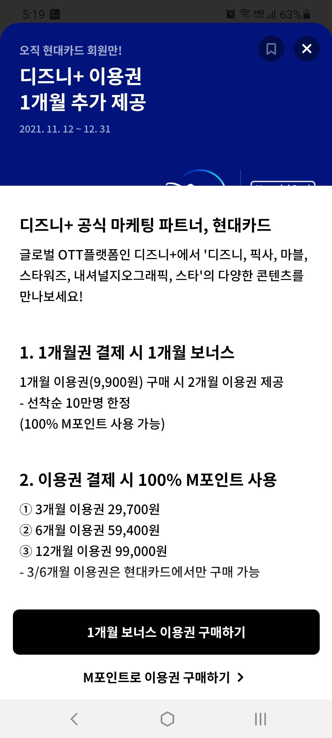 m포인트 9900 쓰니 2개월이네 개이득 2달봐야지