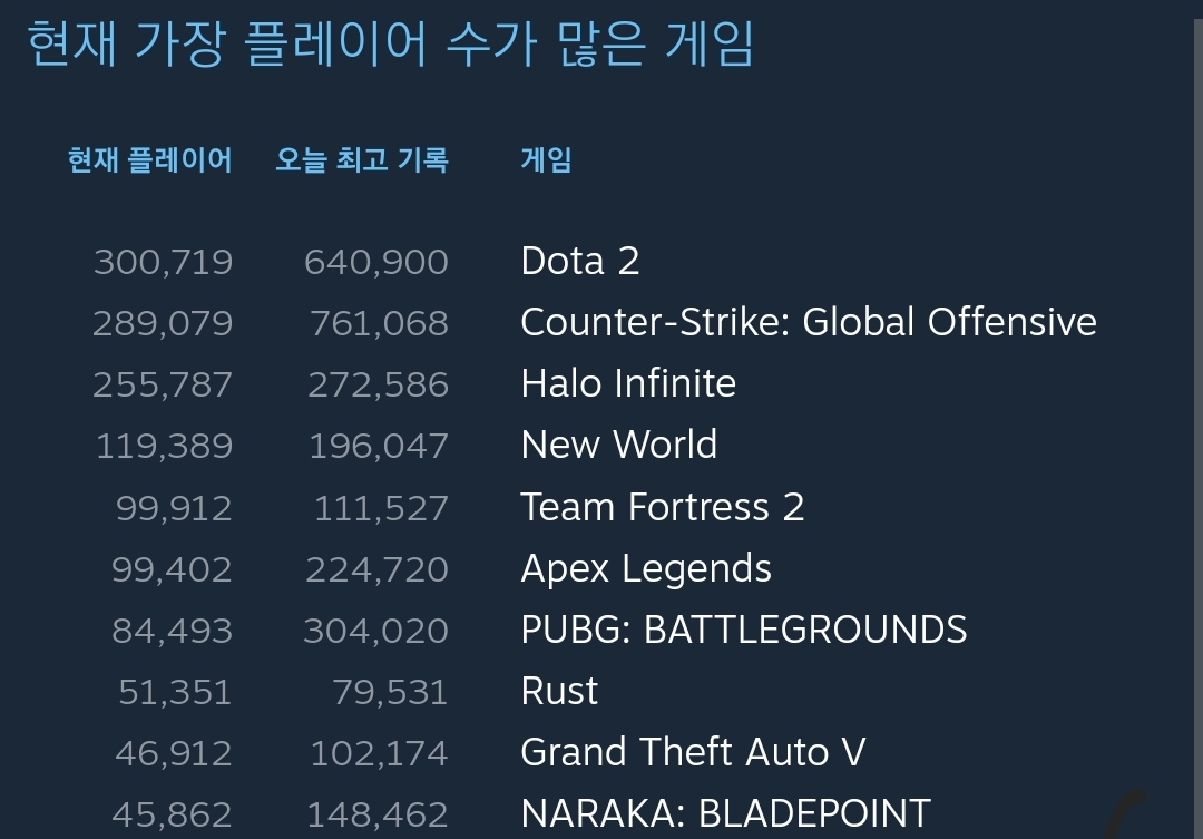 스팀 동접 순위보소