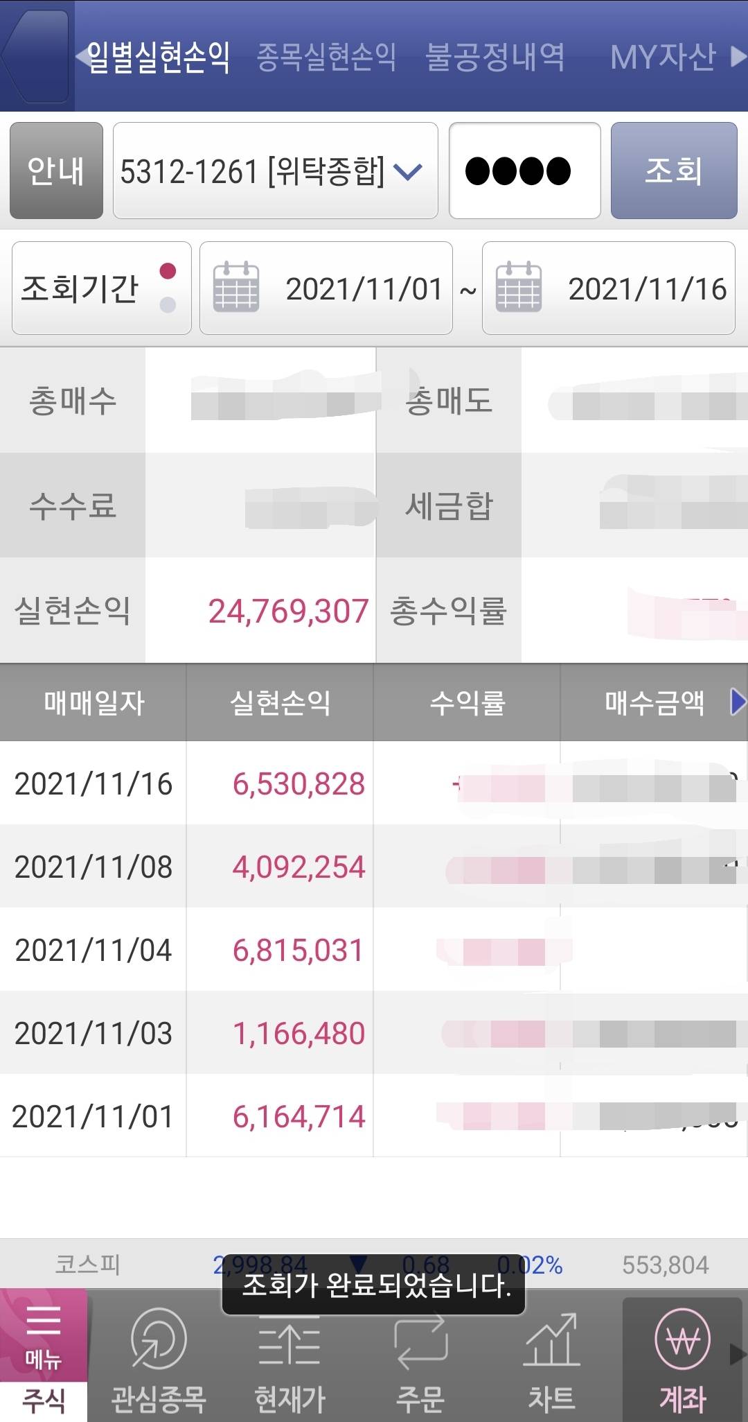 10월 말 쯤에 시작했는데 단타치면서 수익 나기 시작한 게 11월 1일 부터인데