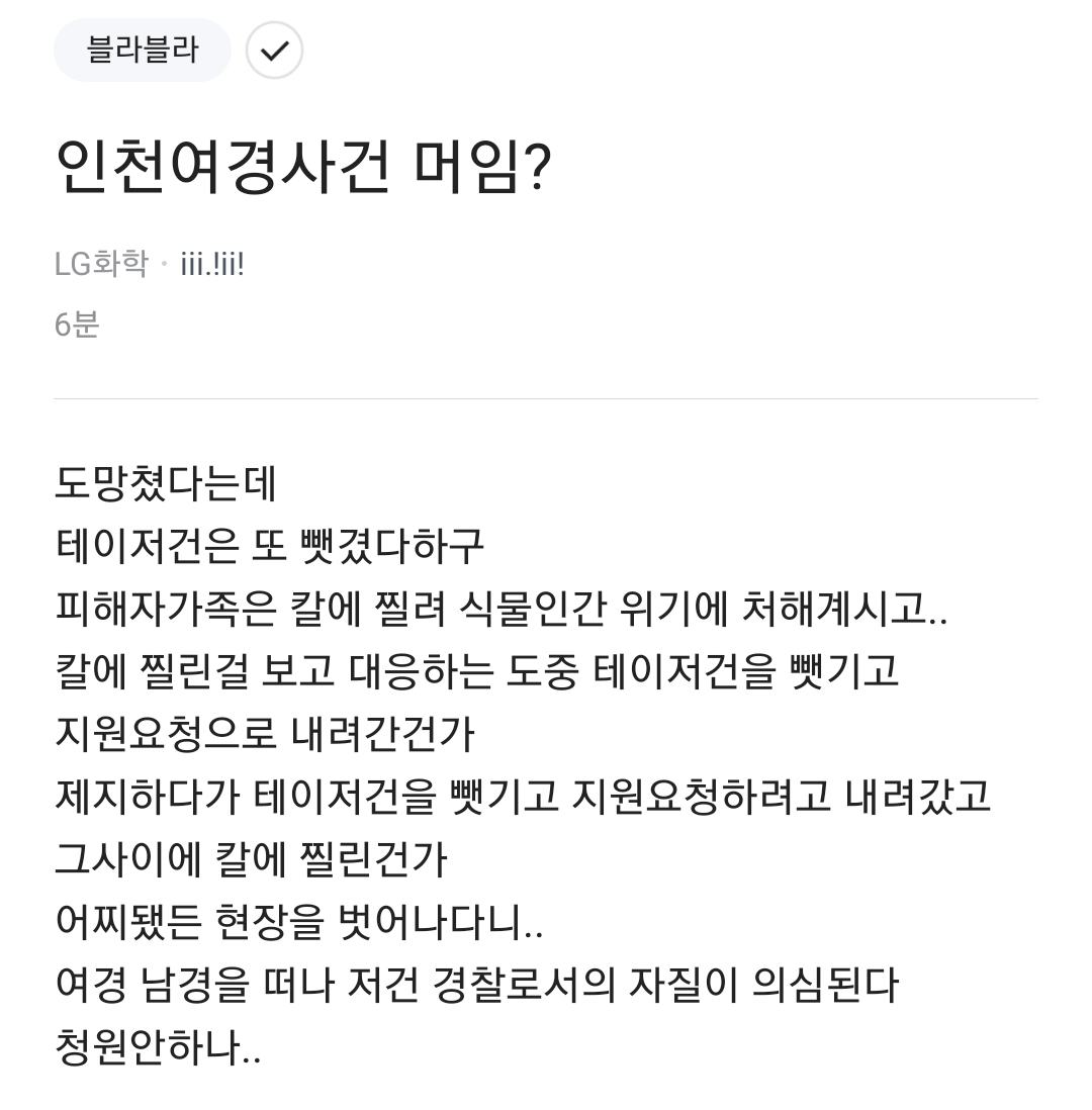 아니 병신같은새끼들이 무기도 털림? 대체 여경의 존재가치가머냐?