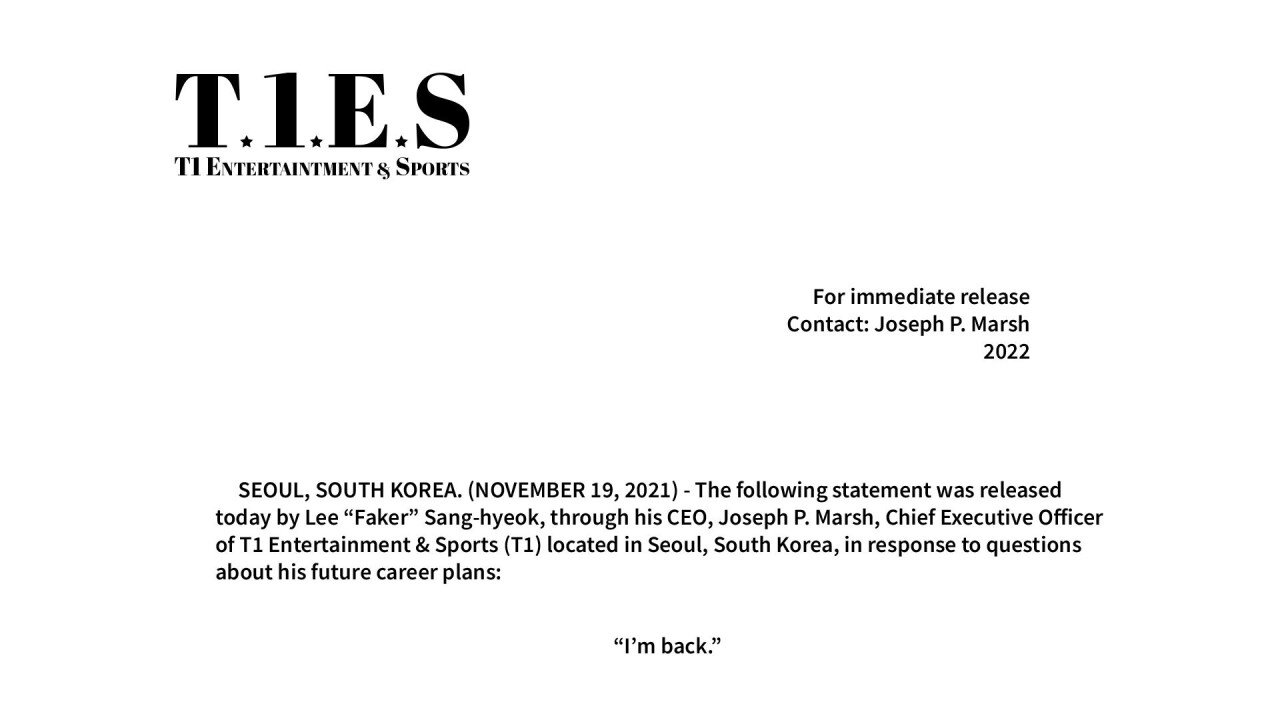T1 사옥과 조 마쉬의 생명이 연장되었군