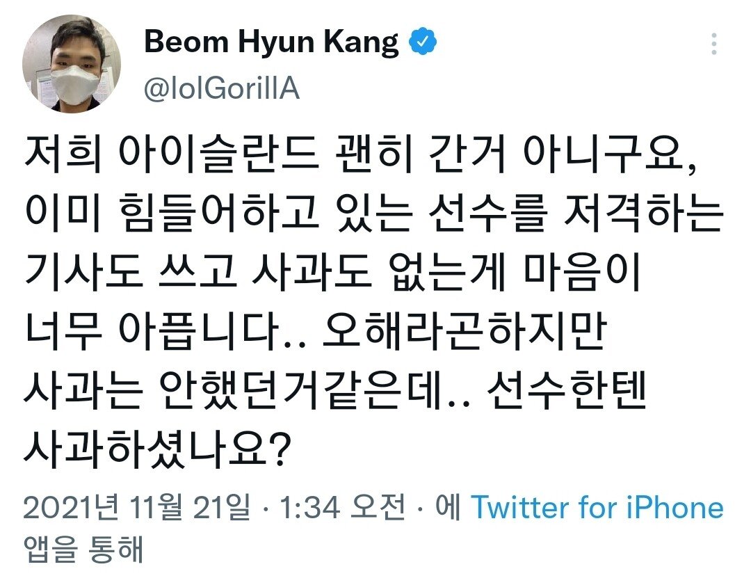 어떤 기자가 롤드컵에 와서 에이전트가 템퍼링한다는 저격기사올렸는데 그 에이전트가 고릴라형이고 해당 선수가 너구리였음