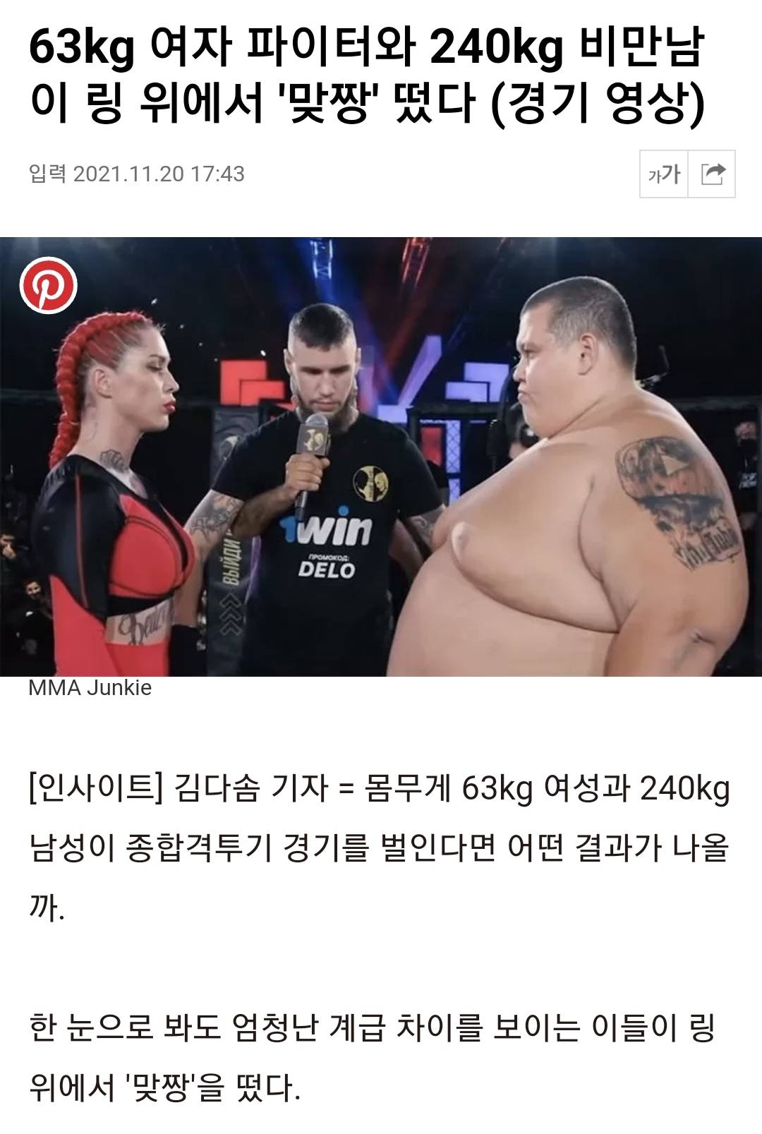 남자고 여자고 격투 프로면 아예 얘기가 다른 것 같드라 체급도 프로끼리 붙을 때나 절대적이지