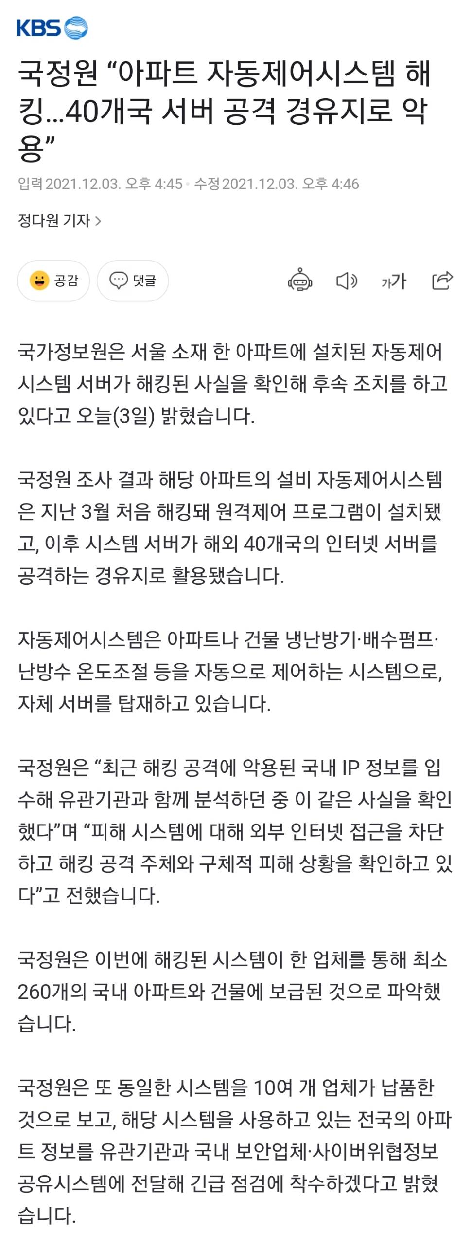 긴급 정보 공유도 됐고 기사도 올라옴