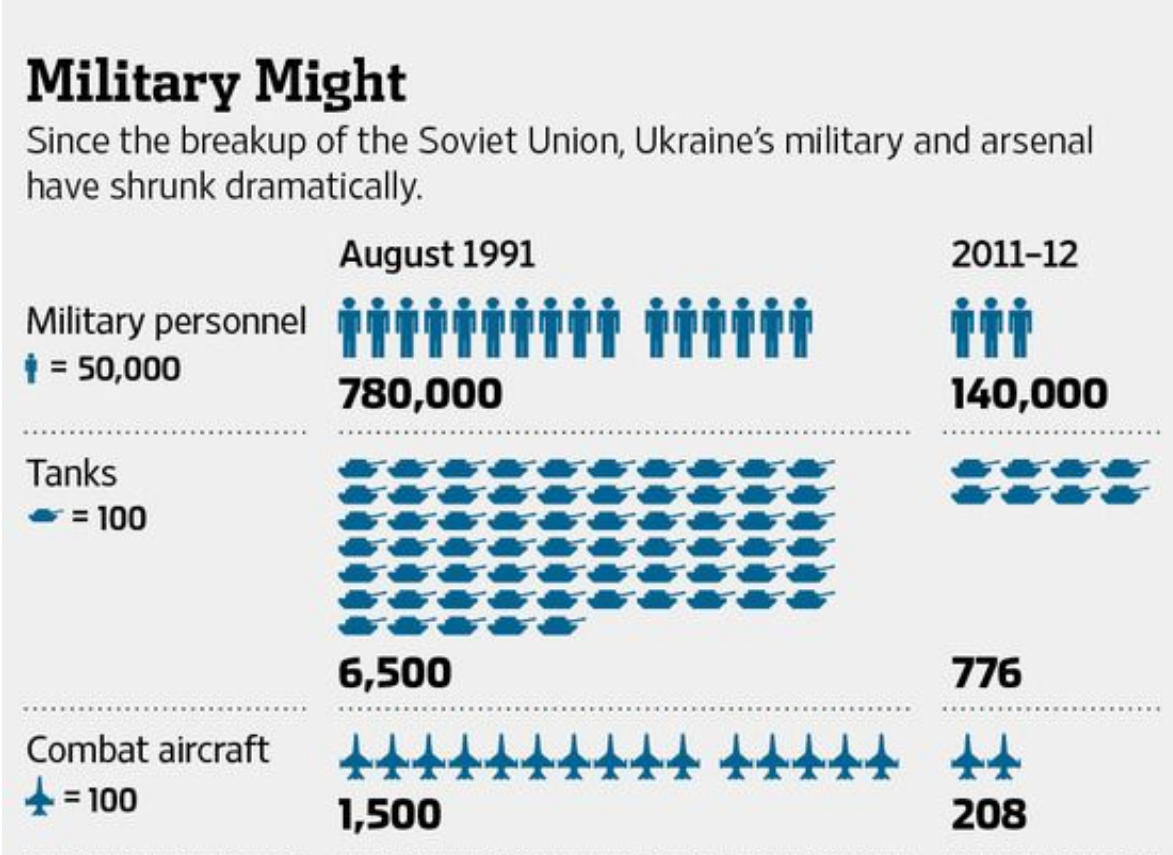 34. 1991년, 러시아로부터 독립할때만 하더라도, 러시아 군사장비와 시설을 그대로 인수받아, 우크라이나는 78만 병력에 세계 3위의 핵무기 보유국이라는 막강 화력을 보유하고 있었음.