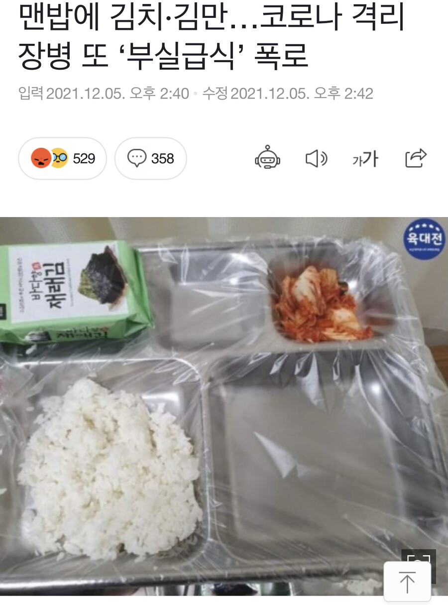 취사반 청소하는애들이 근뮤자 식사 미리 빼둬야하는데 맛있는 반찬 나오는날 미리 신경 못쓰고 오링나면 저럴 때 있지 근무자도 서러운데 격리자는 더하겠다