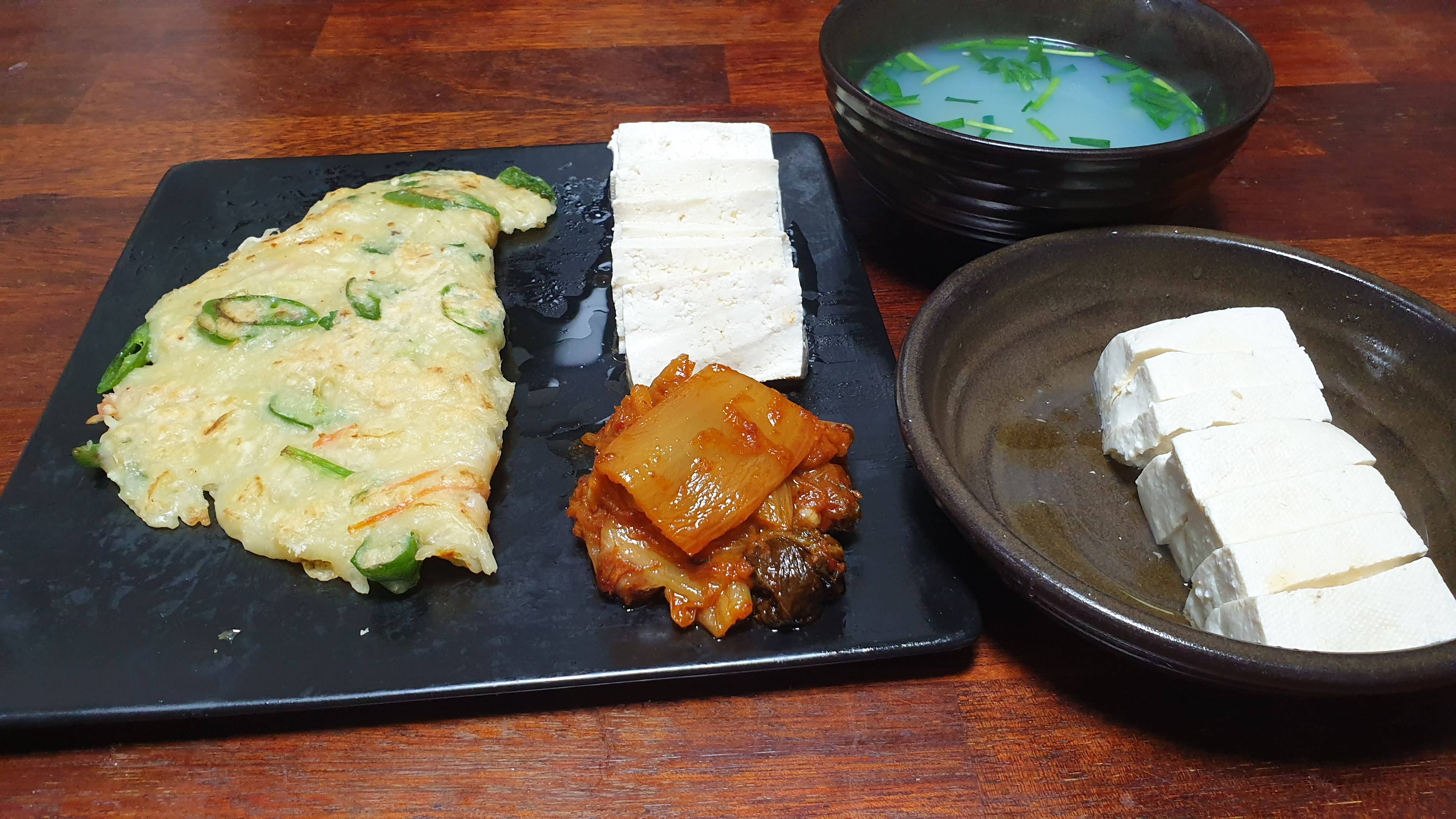 토욜에 회 살때 같이 준 회비빔용 야채가 보이길래 전 부치고 응?