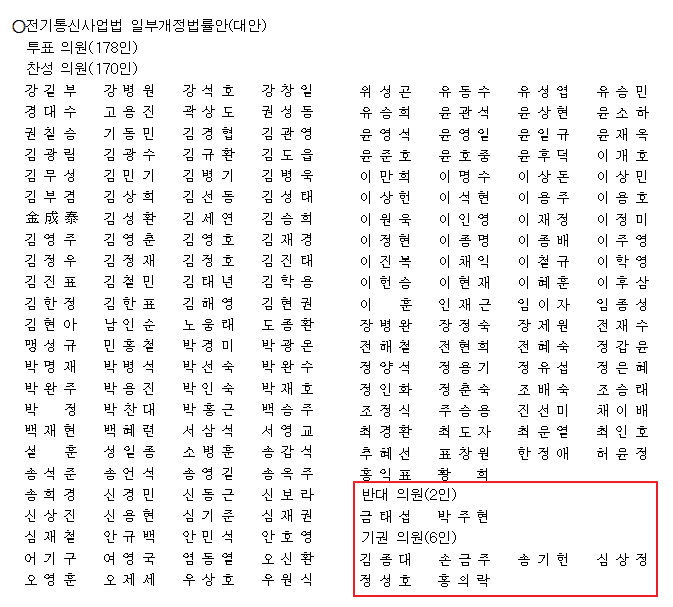 총 178명 중 민주당: 전체 128명중 94명 찬성 국힘(당시 미통당): 전체 112명중 51명 찬성 차이가 없진않음