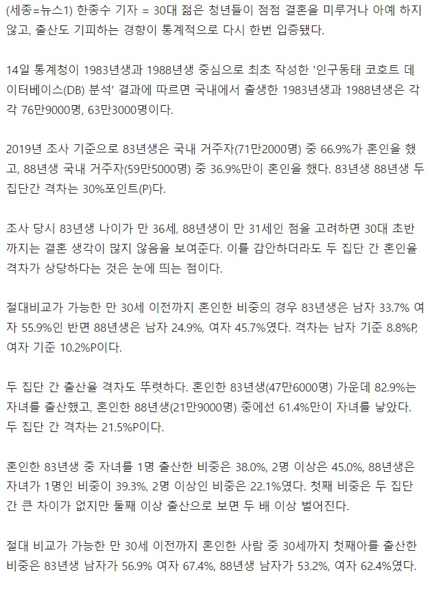 여자에게 출산은 남자에게 군대와 비슷한 측면이 있지