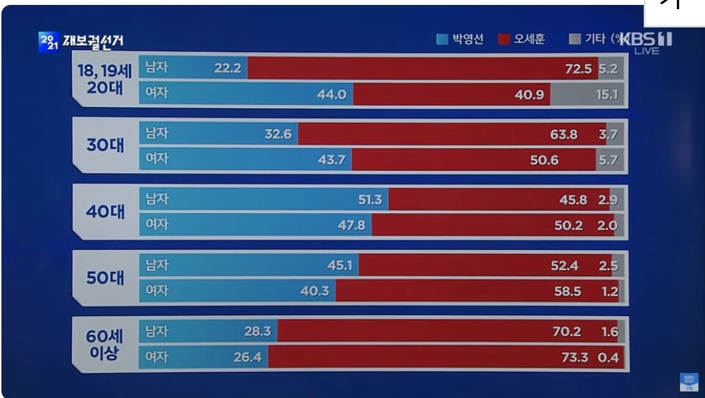 문제는 이준석의 당대표에서 서울시장 보궐선거에서 나타났듯이 국힘의 2~30대 여성표가 절대적으로 부족했던 부분이 문제였던 거임