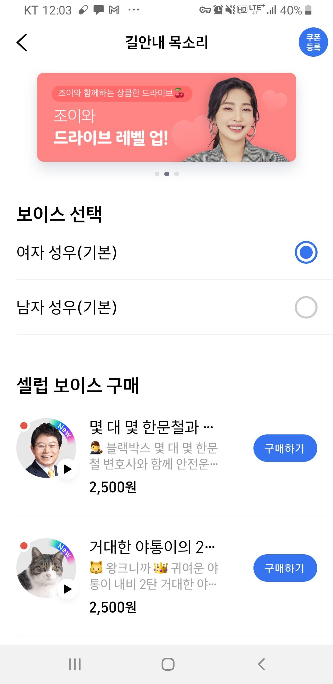길안내 남자성우도 있네? 여자만 있는게 이상하긴 하지만 여자목소리가 잘들려서 쓰는거 아닌가