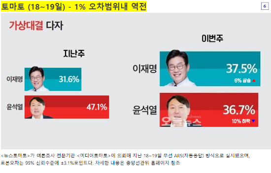 윤은 떡락중인데 찢은 그만큼 올라가진 않음. 무당층으로 전환중