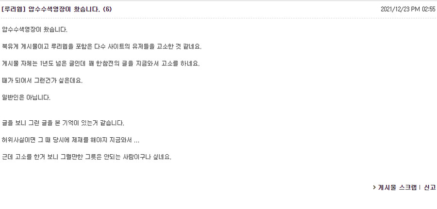 이번에 -근- 외에도 타 사이트에도 고소 들어갔다고 함