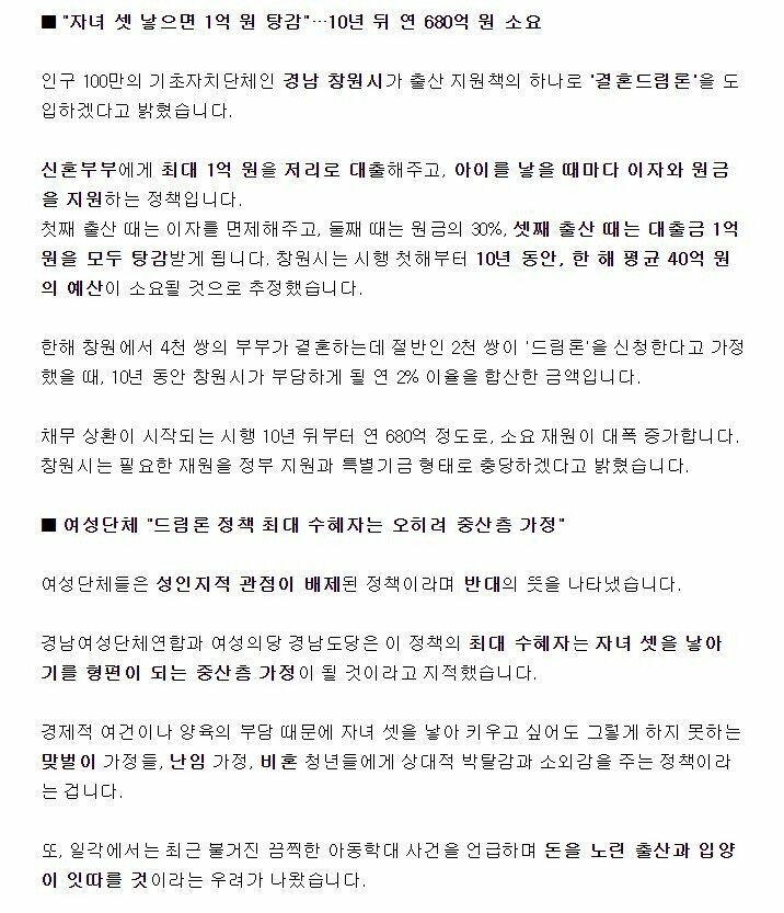 대출, 셋째까지 낳으면 1억 전부 탕감이라는 획기적인 정책을 내놓음