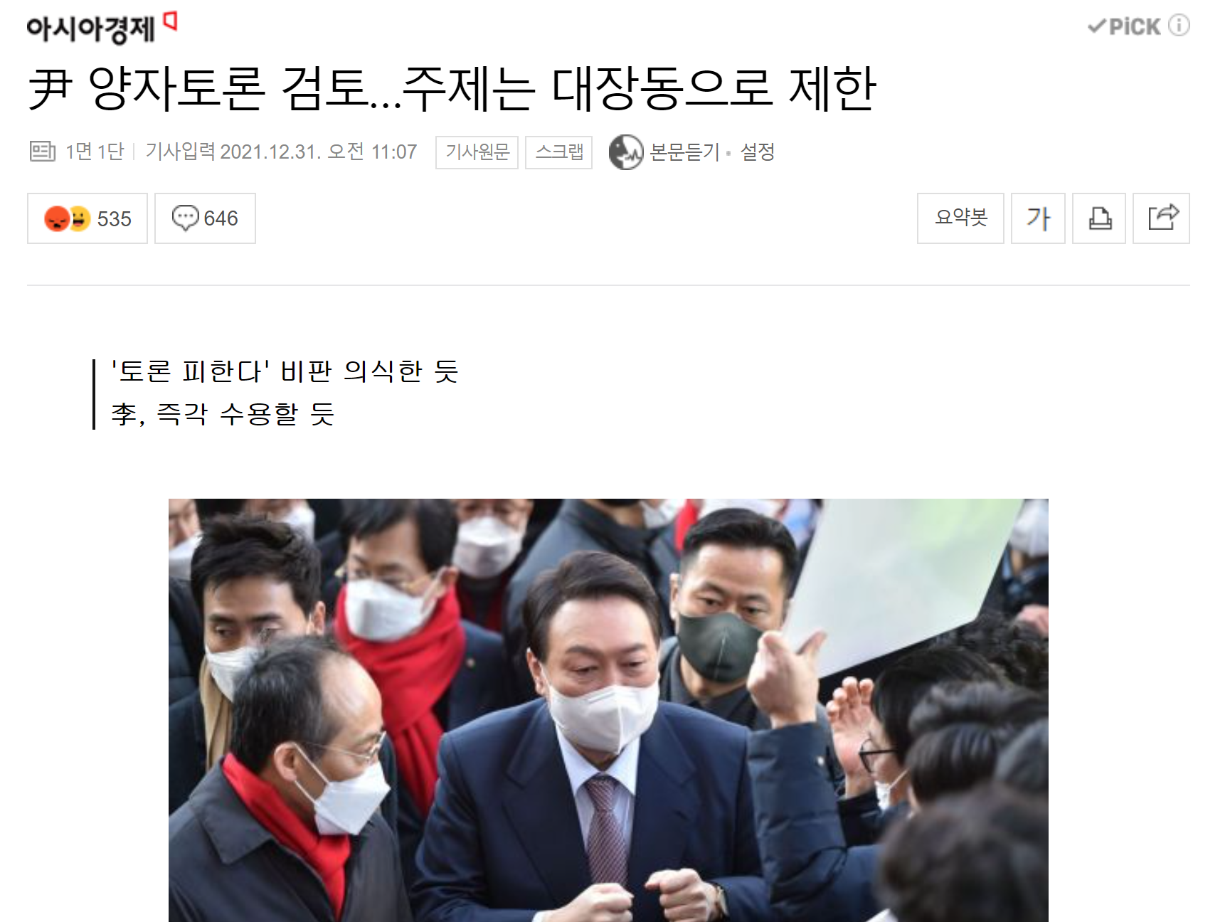 처발릴 느낌인데;; 대장동은 토론으로 증빙될 수 있는 문제가 아니라 심증의 문제고 특검으로 제대로 수사해야 밝혀질 문제이기 때문에 현시점에서 찢 지지자는 문제없다!고 안티는 저 쓰레기놈! 하고 갈리는 문제인데 대놓고 토론에서 시시비비 가리자 해봤자 결론은 "알수없음"으로 나올 수 밖에 없는거고 그러면 시미턴놈이 지는거지