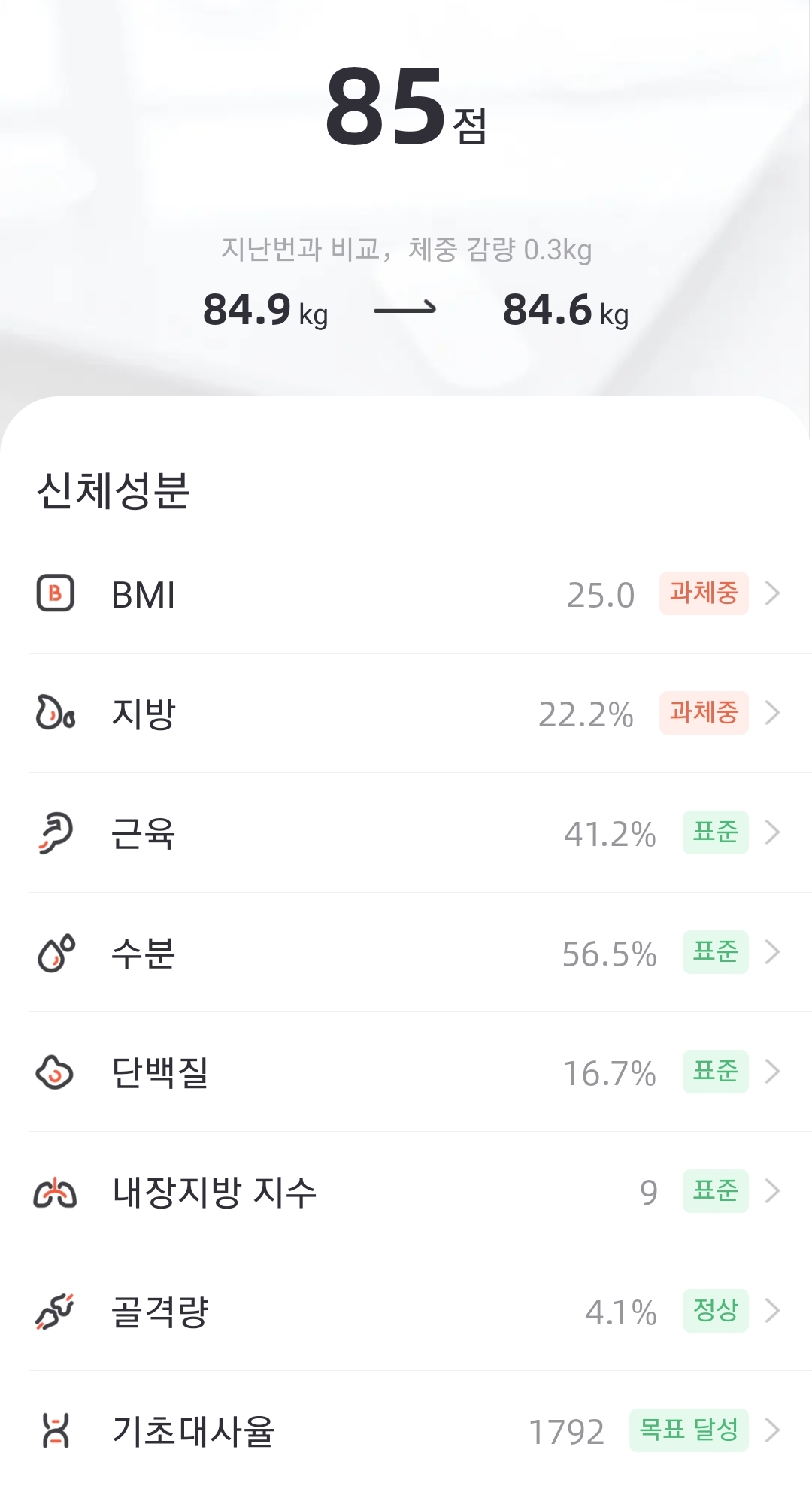 85점 정도면 몸 존나 좋은편인데?