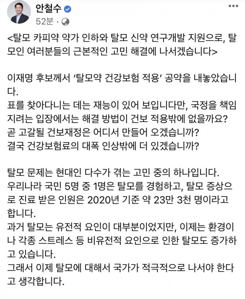 넌 이미 건보료 적용에 혹해서 찢지지한다 농담했을때부터 탈모인으로서의 긍지를 상실했다