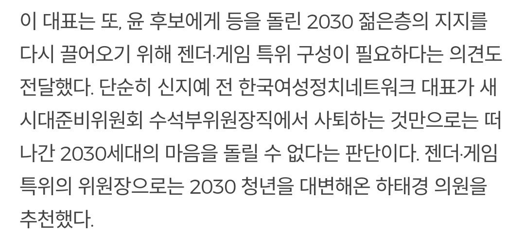 젠더게임특위로 하태경 추천했는데 윤석열이 거절