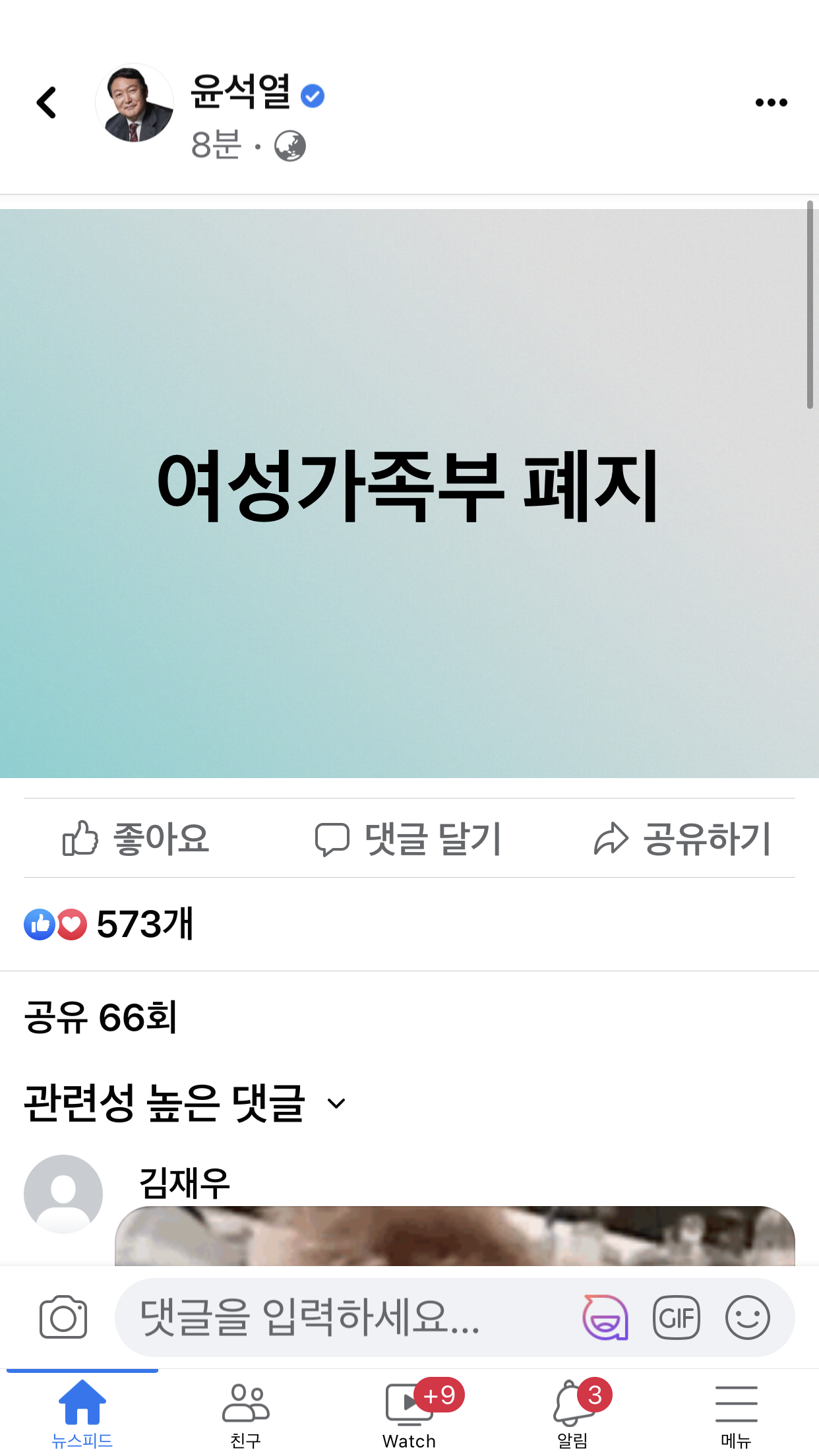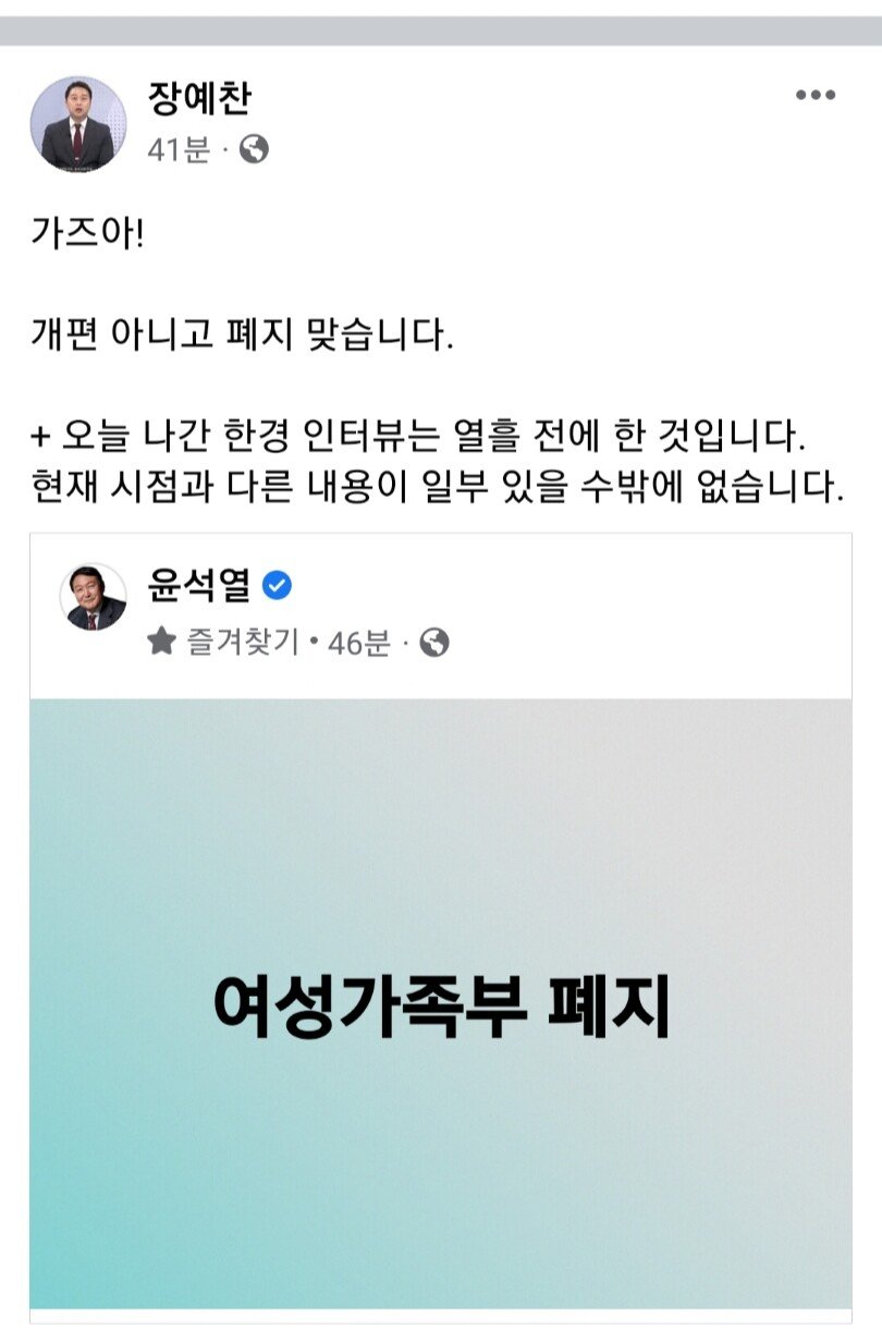 양성가족부 이런걸로 개편 아니라 폐지 맞다고함