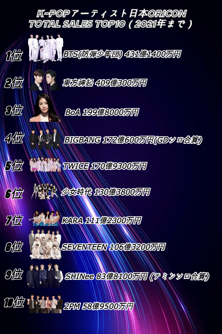 오리콘 토탈 세일즈 기록 top 10 (21년까지 기준 역대 기록)