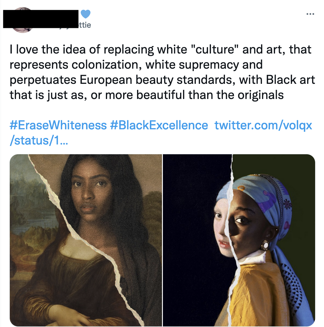 난 식민지화와 백인 우월주의를 대표하고 유럽식 미의 기준을 영구화 시키는 백인 문화와 예술을 원본보다 더 아름다운 흑인 예술로 대체하는게 너무 좋아