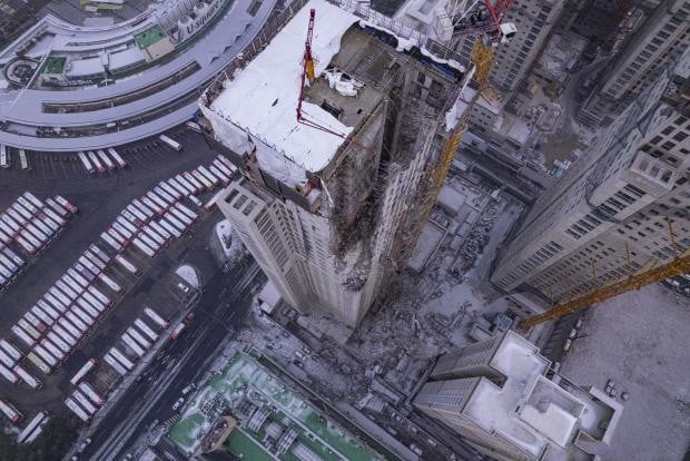 이거 추가 붕괴 위험성 때문에 드론으로 잠시 살펴보고 주변 다 대피시켰다더만 구조도 포기했고 정밀진단은 내일하고 안전조치하고 구조한다던데 이 날씨면.... 그리고 크레인이 쳤다고 그러는데 좀 지켜봐야할듯 당국은 콘크리트 타설을 위한 거푸집(갱폼·Gang Form)이 무너지고 타워크레인 지지대(월 타이·Wall Tie)가 손상되면서 사고가 난 것으로 보고 있다.