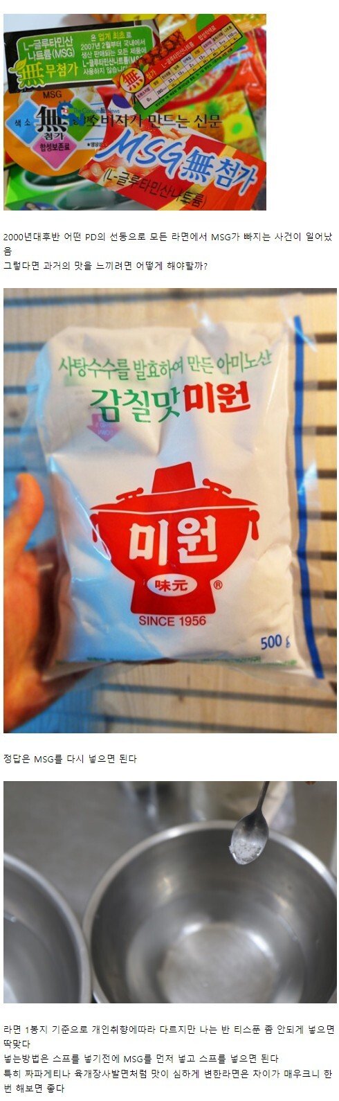 미원 뺀 맛으로 레시피 변경한거 아님? 그럼 옛 맛이 아니라 새로운 맛이 될 것 같은데