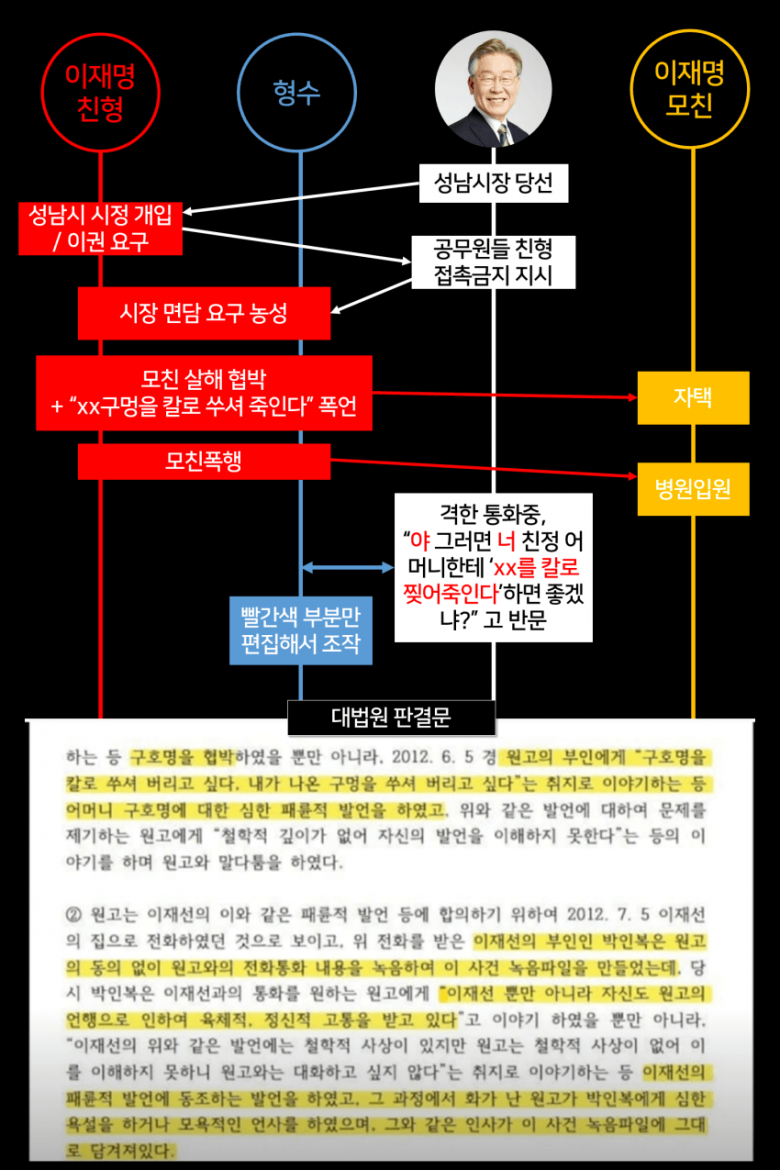 R 어머니, B 이재명, N 이재선, O 형수