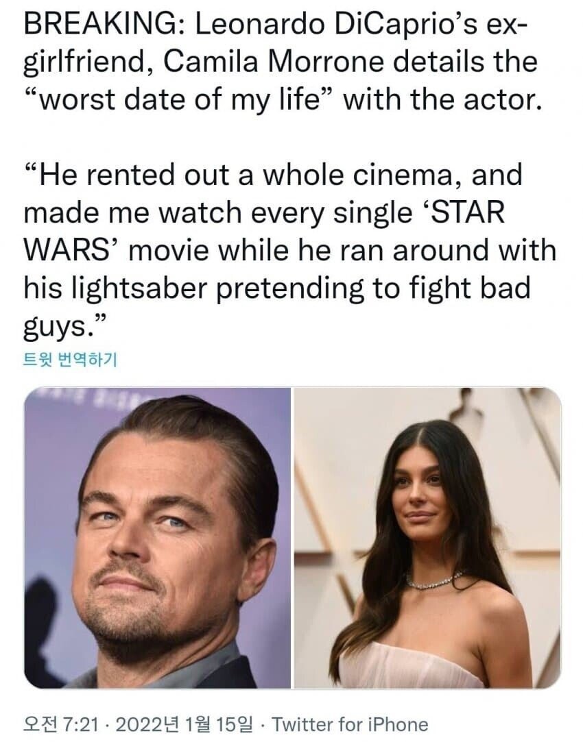 디카프리오 전 여친이 디카프리오와 함께 한 인생 최악의 데이트를 이야기함