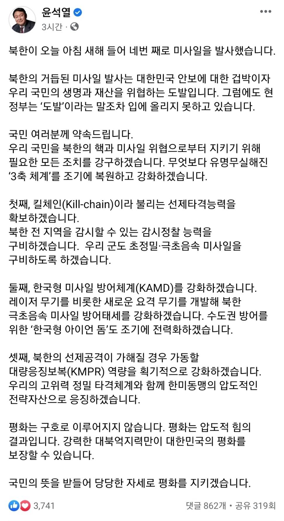 평화는 압도적인 힘으로 하는게 맞지. 북한 눈치보면서 퍼주는게 아니라