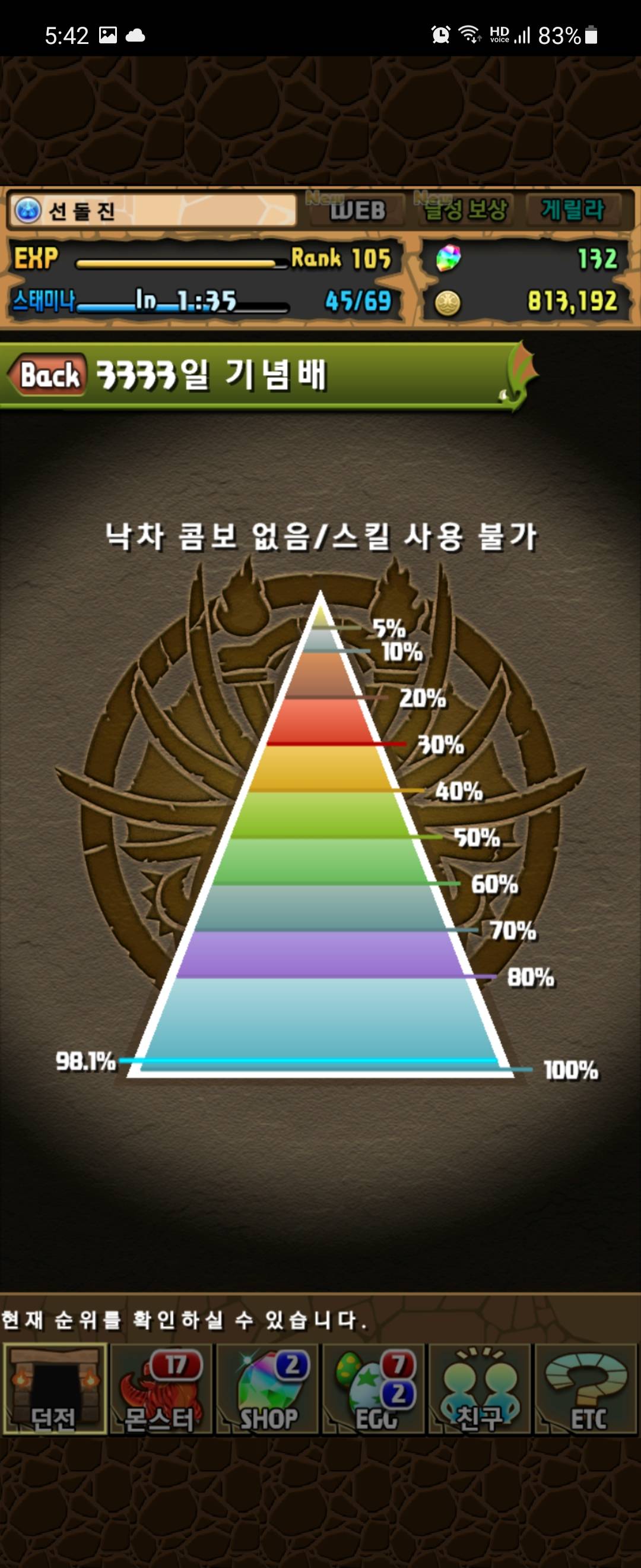 법석회수겸 천천히 돌아도 되고 스토리던전 먼저 깨는 것을 추천함