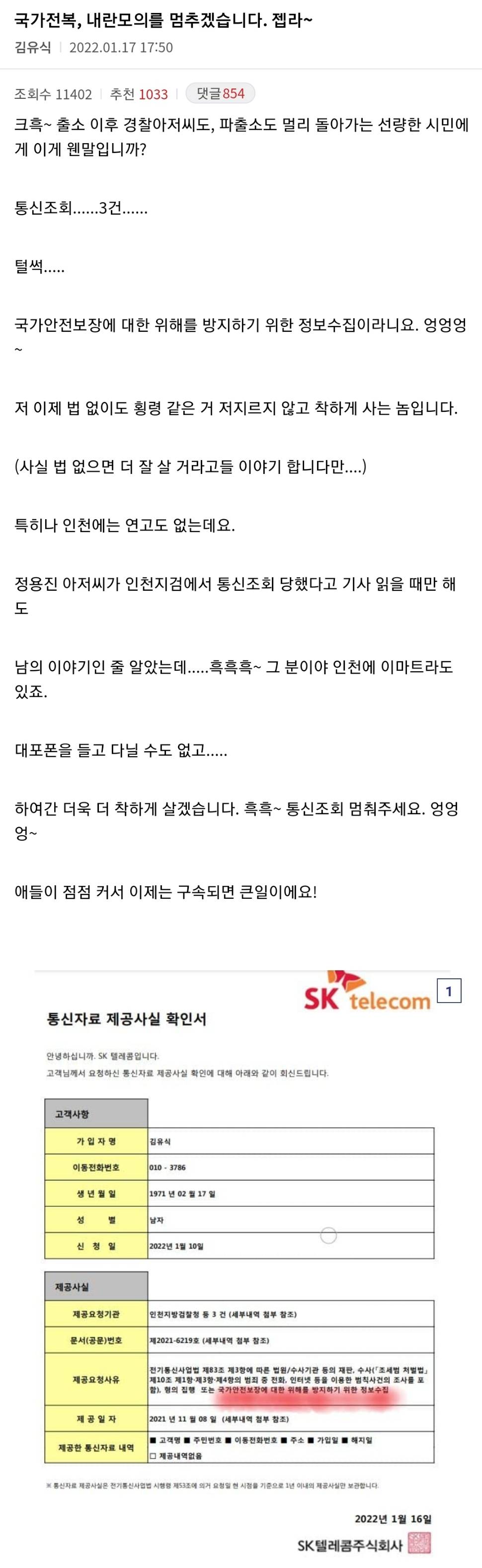 ???? 아니 민간인 저런식으로 사찰해도 되는거임? 내가 지금 멀보고 있는거지 대체..