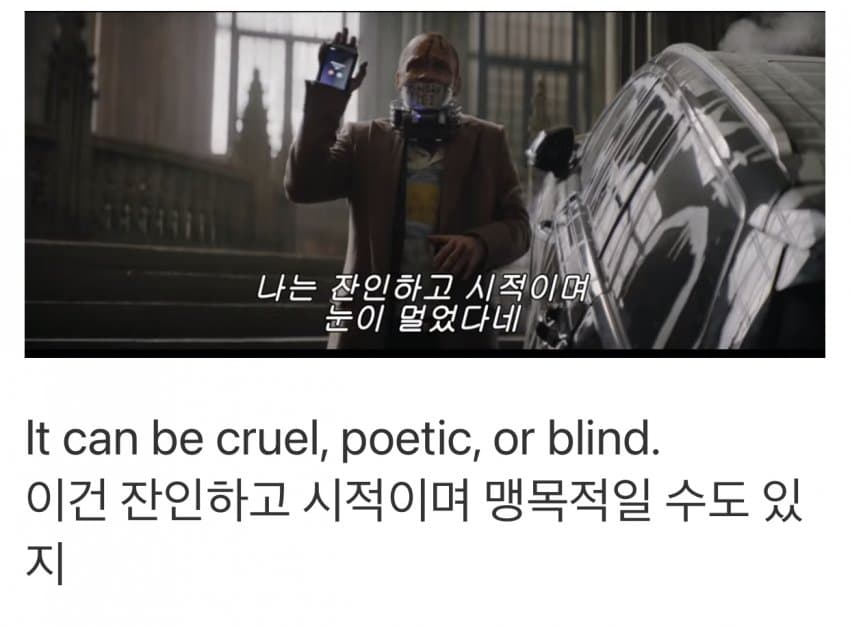 이건 영어실력으 ㅣ문제가 아니고 한국말을 캐릭터와 극에 어울리게 조립하는 능력이 심히 처참