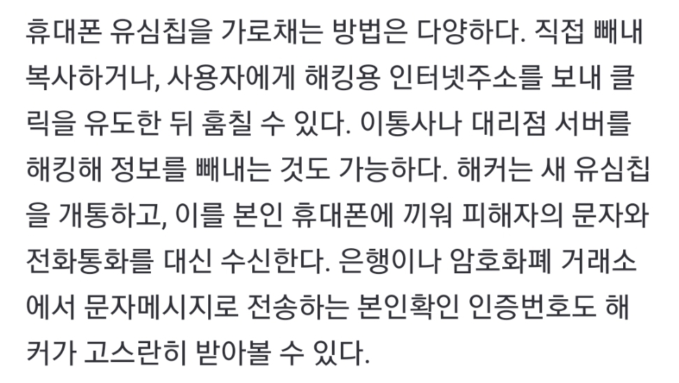 이런 식으로 다양하게 유심정보 빼돌려서 복제한다