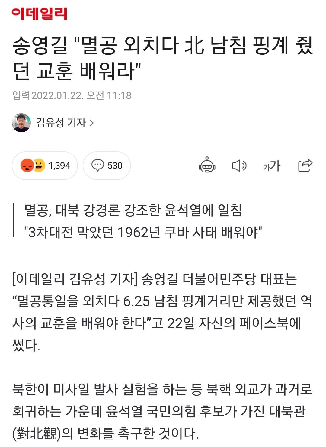 그래서 요즘 북에서 빵빵 쏘는게 윤탓임?ㅋㅋ