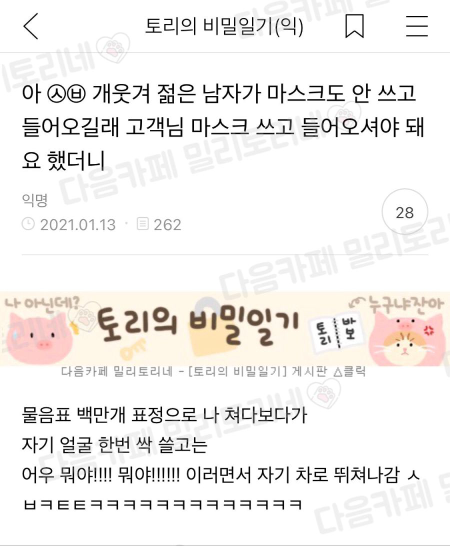 바깥공기가 상쾌하면 얼굴을 한번쓸었어야지ㅋㅋ