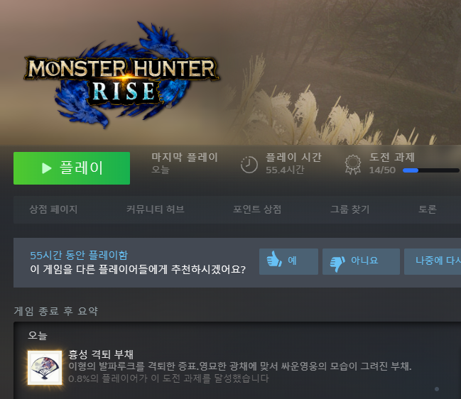 한판에 헌터랭크 4랭씩 쭉쭉 올라서 100랭 찍고 발파루크 잡음