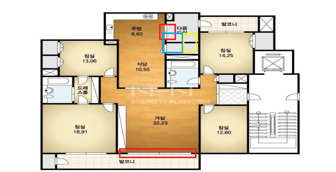 파란색 팬트리 확장한담에 저기 냉장고 넣고 노란색부분 윗쪽으로 문만들고 팬트리로 쓰고 싶음