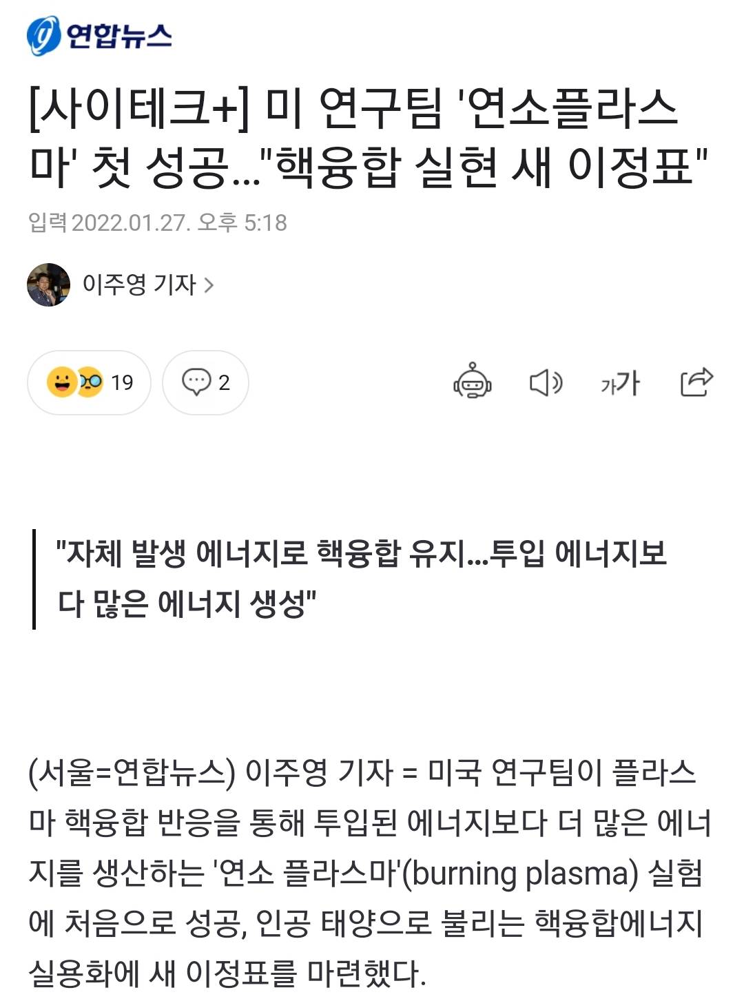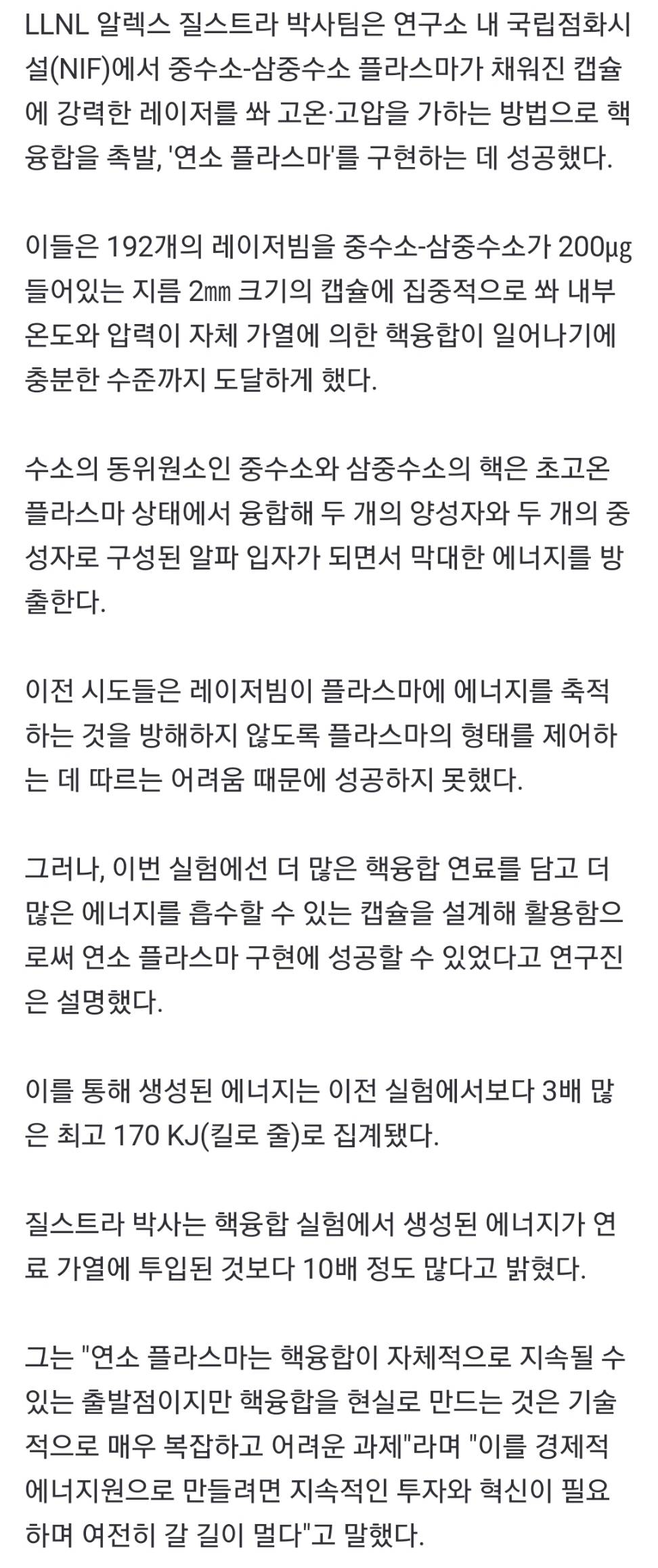 인풋보다 아웃풋이 많은 핵융합 실험 성공