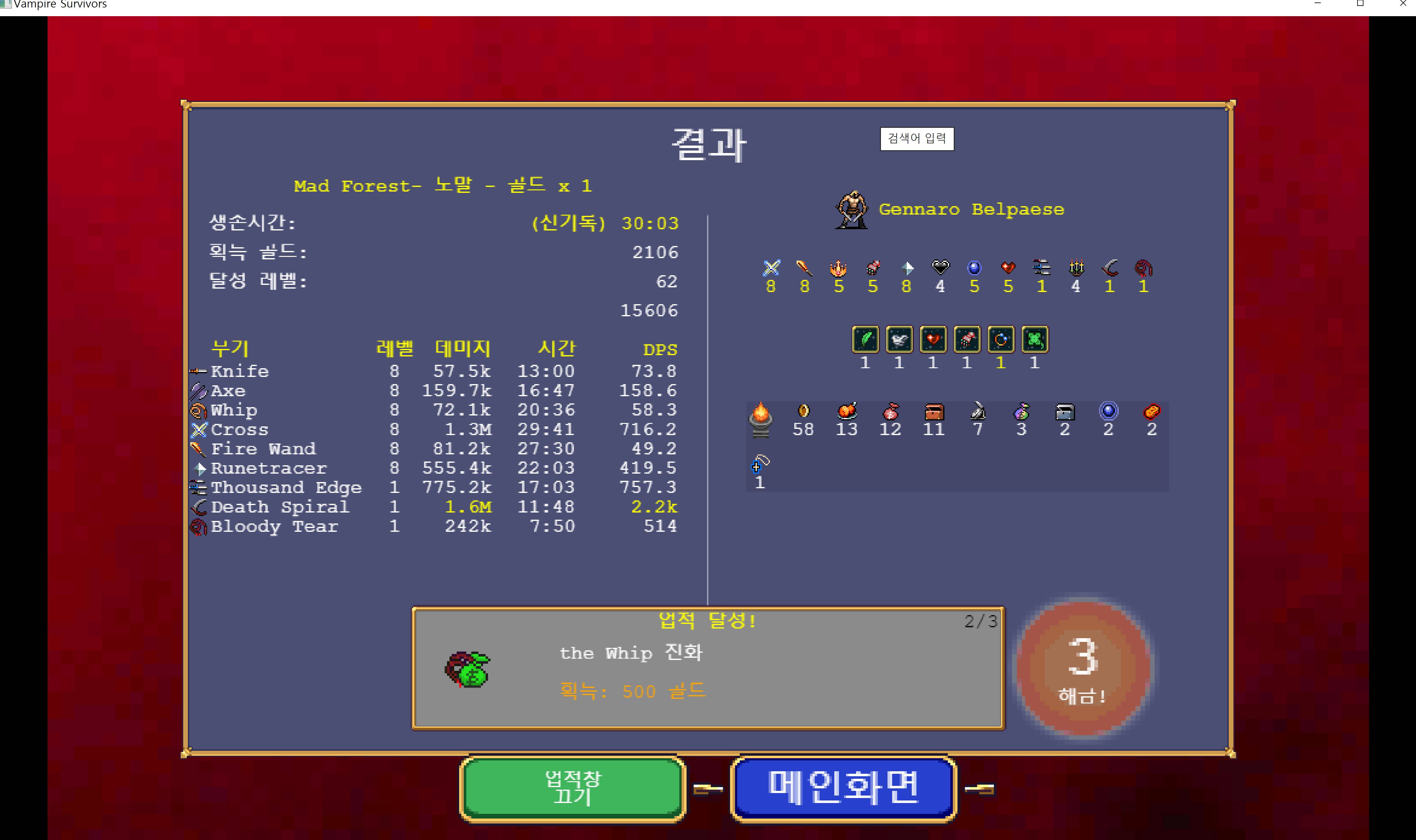 채찍이 나쁘지않은게 피를 잘채워줘서 후반에 실수로 피까였을때도 바로 회복돼서 편한점이 있음 어차피 화력은 지금까지 나온걸로는 후반끝가지도 부족할 일이 없음 다만 자꾸 0.1회복 피통증가 행운증가 이딴거 고르면 약해질 수 있다