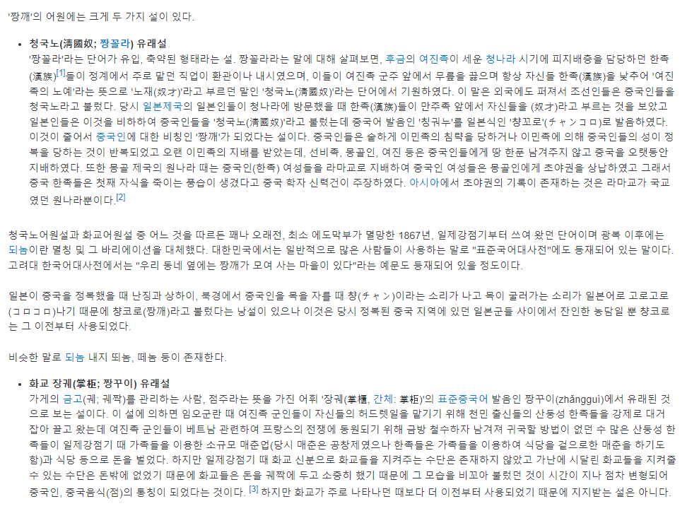 그리고 본문 얘기가 정설도 아니네 짱꼴라 원조설도 있음 그러니 계속 짱깨를 써도 될듯