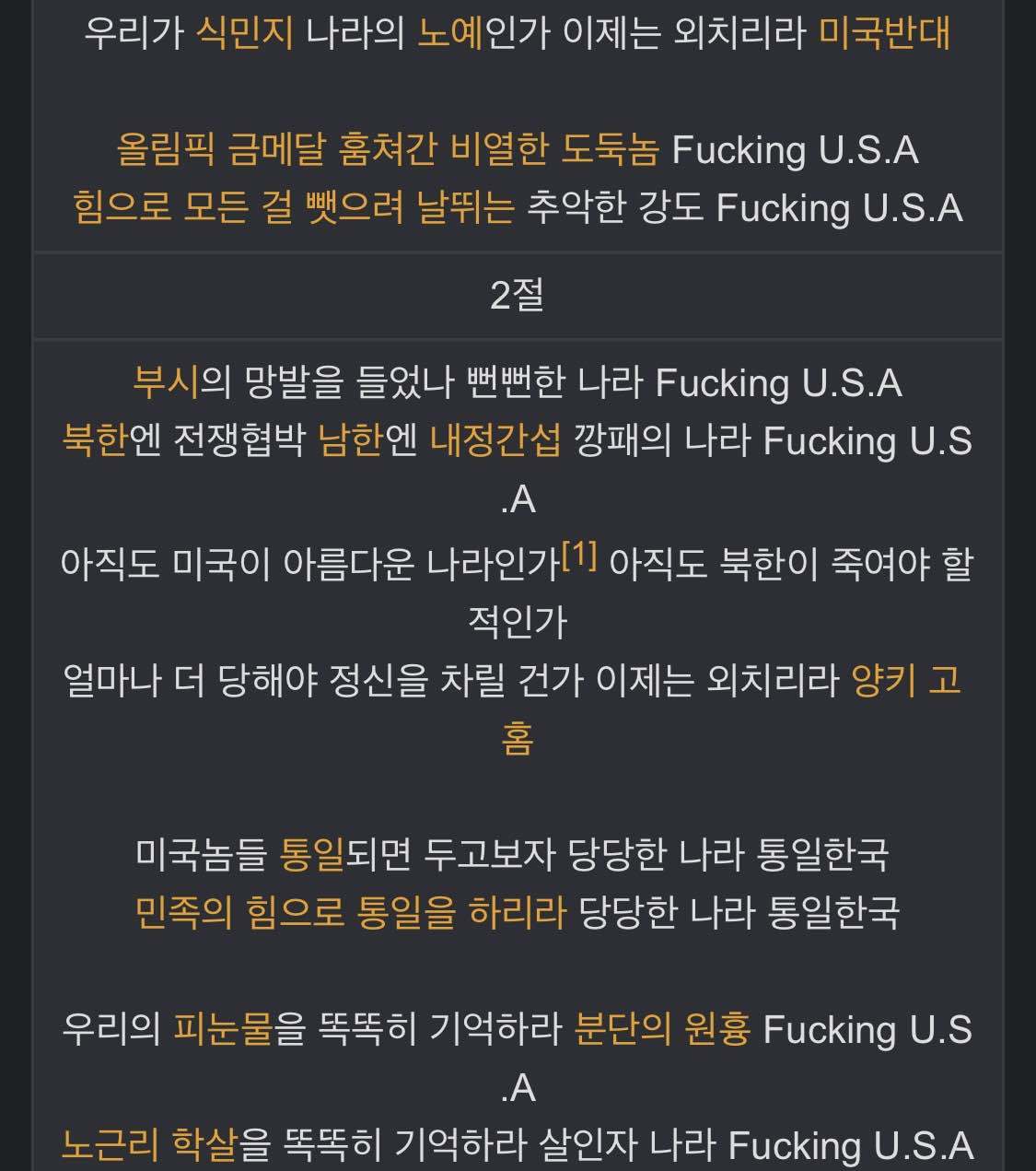 미국과 일본은 퍼킹 유에스에이, 노노재팬 이러더니