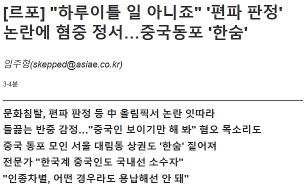 ㅇㅇ 얘넨 그냥 조상만 같은핏줄인 한국말할줄아는 중국인이잖어. 그리고 얘넨 심지어 지들도 중국인이라는 인식이 확고하고 거기에 자부심까지있음. 자꾸 기생충처럼 비빌때만 동포어쩌구하면서 개수작부리는데 이상한놈들임